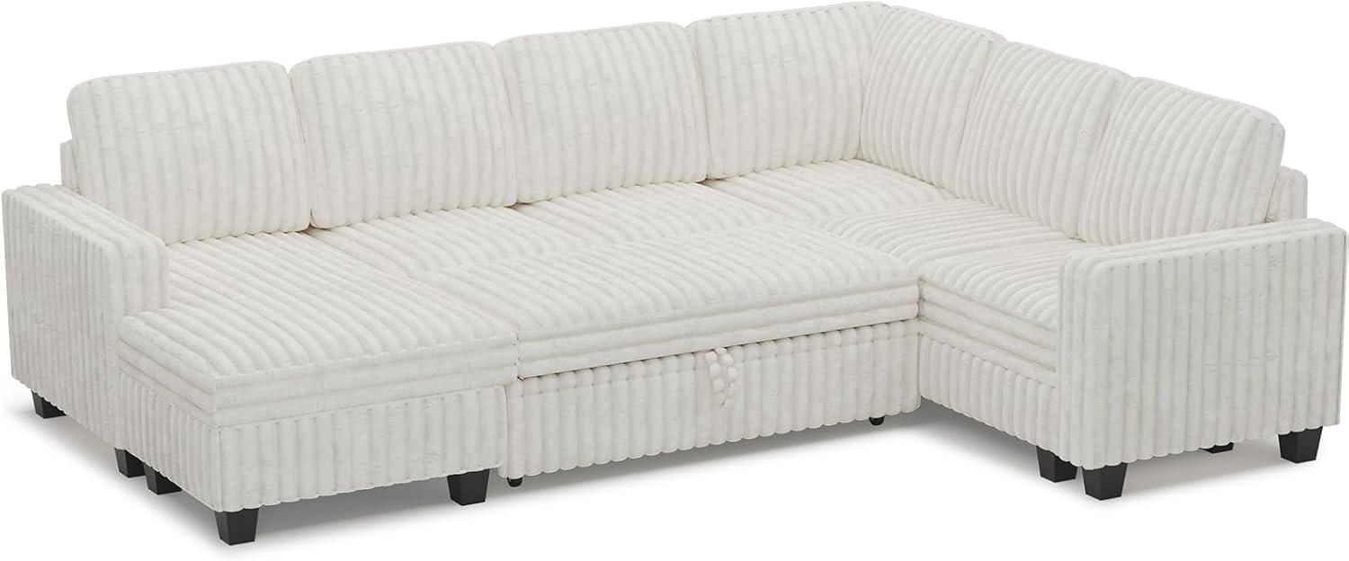This modular sectional sleeper sofa immediately stands out with its plush corduroy upholstery, which offers both visual warmth and extraordinary comfort. The soft texture adds a cozy, inviting layer to any living space, while the clean white tone effortlessly complements a variety of décor styles. Designed with versatility in mind,it transforms smoothly from an L-shaped sectional into a spacious pull-out bed,providing flexible seating and sleeping solutions without compromising on style.
