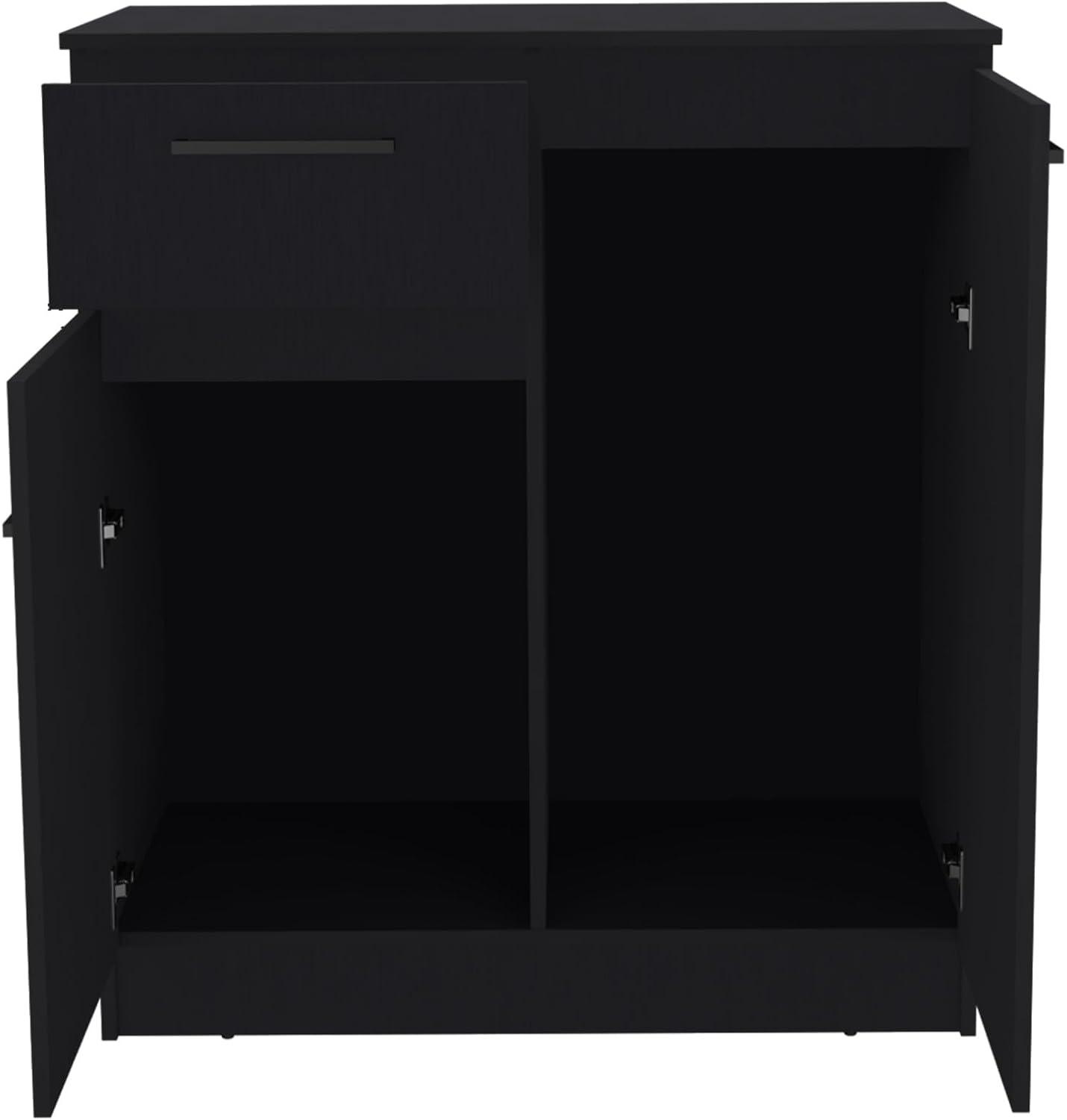In our bedroom, this minimalist dresser impresses with its sleek black finish and efficient use of space. Crafted from engineered wood with solid wood and MDF fillers, it feels sturdy and built for the long haul. The compact dimensions-just over 35 inches wide and 36 inches tall-make it a perfect fit even for rooms where floor space is at a premium.With a spacious single drawer complemented by two cabinet doors, it offers an organized solution for clothing, linens, and personal items, while keeping dust and clutter at bay.