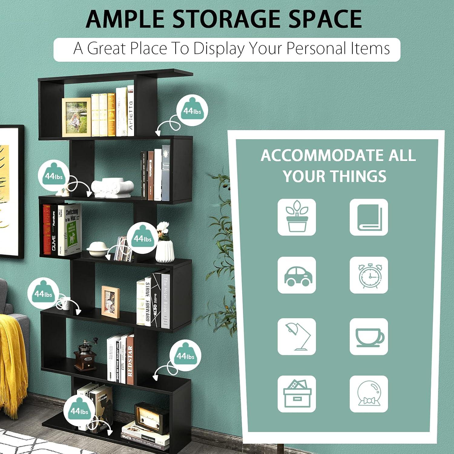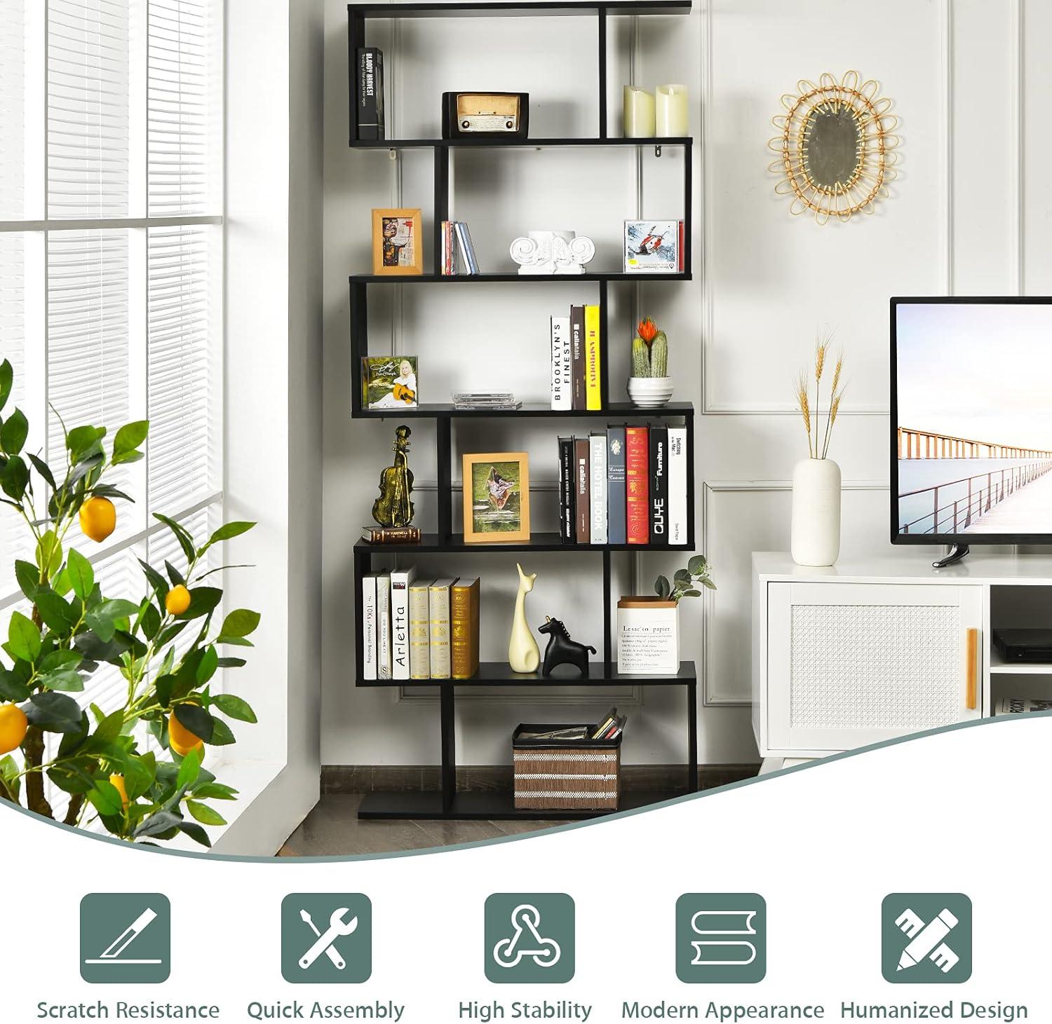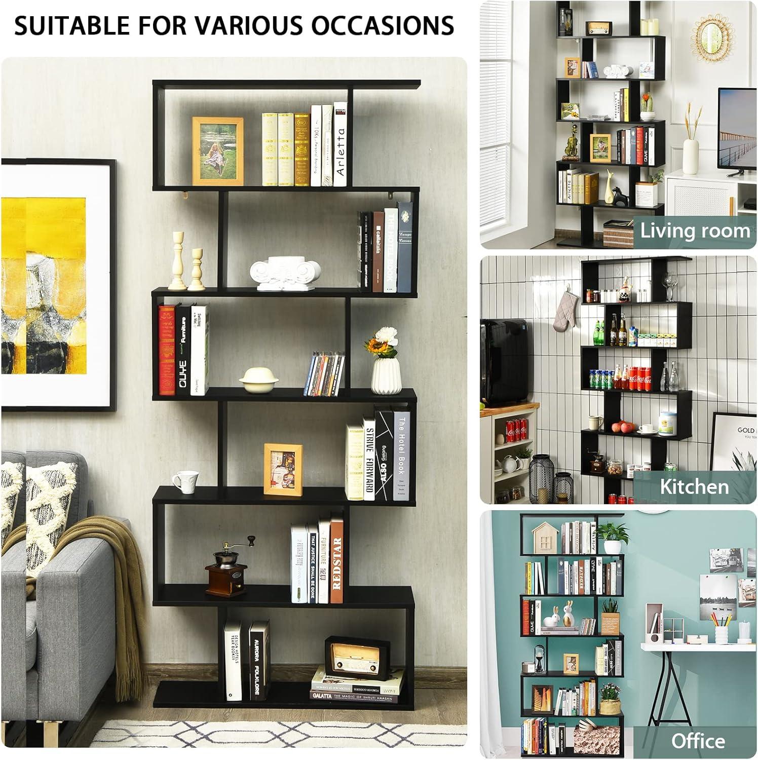 Transforming our home office into a neat and inspiring workspace became effortless with this sleek 6-tier bookshelf. Its unique S-shaped design not only serves as an eye-catching centerpiece but also maximizes vertical storage without occupying much floor space. Each tier is spacious and sturdy, accommodating up to 44 lbs, which means we can store everything from heavy reference books and binders to decorative plants and framed photos with confidence. The engineered wood construction feels solid and durable,while the smooth,waterproof surface makes cleaning spills or dust a simple task. Plus, the built-in anti-tipping device gives us peace of mind, knowing the shelf stays firmly in place even with heavier items on display.
