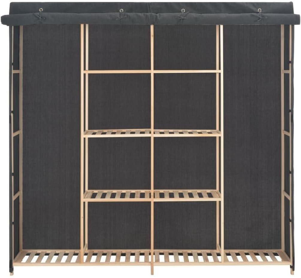 We appreciate how this versatile storage unit masterfully balances aesthetics with functionality. Crafted from solid fir wood and covered in a sleek grey fabric, it adds a subtle warmth to any room while providing a robust frame that stands the test of time. Its spacious dimensions (173 x 40 x 170 cm) make it an excellent choice for bedrooms, living rooms, or even walk-in closets, delivering a practical solution without compromising on style.