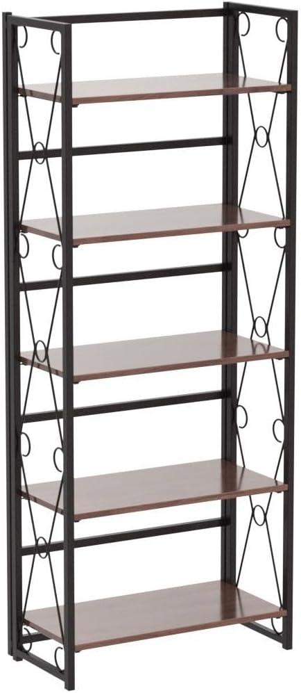 In both our living room and office, this bookshelf has become an essential piece that blends effortlessly with our existing décor.The industrial metal frame paired with teakwood brown shelves brings a modern yet warm aesthetic,enhancing the ambiance without overwhelming the space. Its slim profile and open back design maintain an airy feel, avoiding any bulkiness. We appreciate how the five-tier layout offers ample storage for our books, décor items, and even small plants, while the X-shaped guardrails keep everything secure, preventing accidental falls. Plus, the ability to fold the unit flat means we can easily tuck it away whenever we need more floor space.