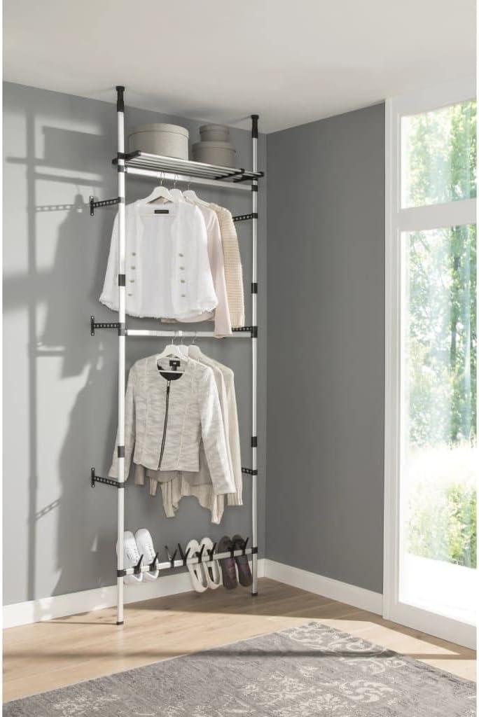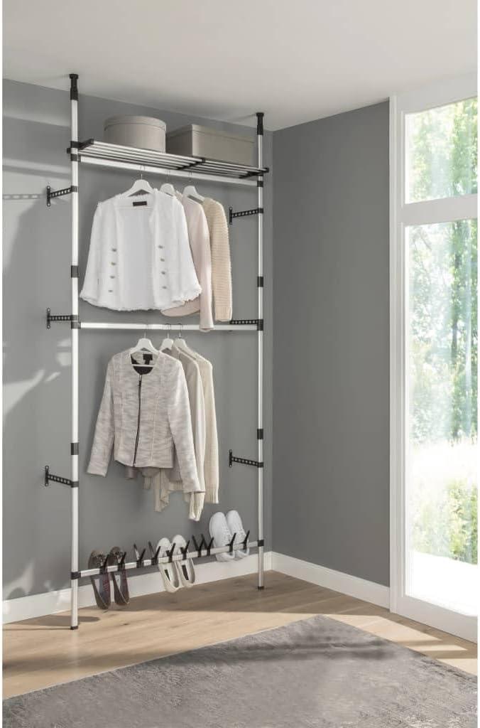 this system’s combination of a sleek aluminum frame and smart telescopic form factor makes it a practical choice for anyone needing an adaptable and sturdy wardrobe solution. We’d recommend checking it out and experiencing firsthand how it can transform your storage needs.