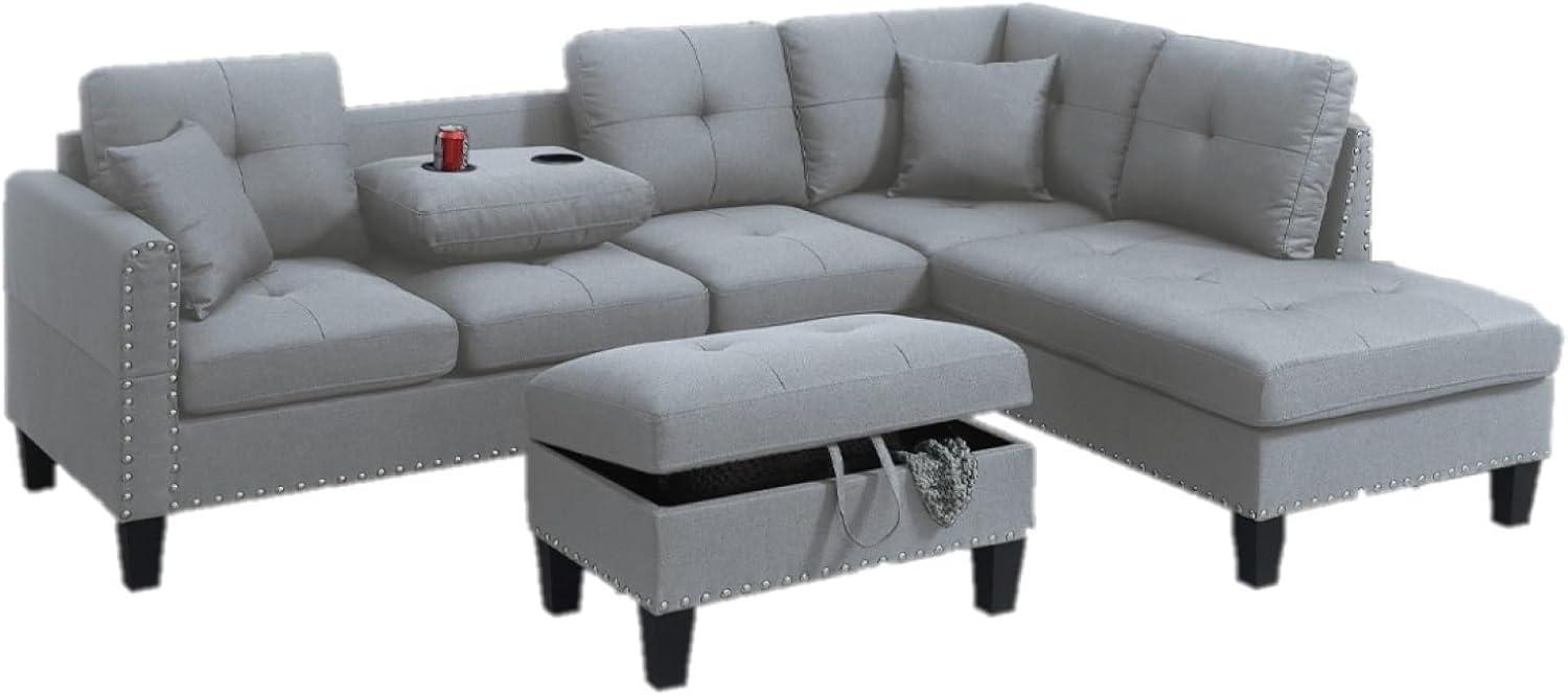 In our search for the perfect sectional, this set stands out for its blend of style and functionality. Unlike some bulky alternatives we’ve experimented with, its taupe grey linen-like fabric strikes a great balance between modern sophistication and cozy comfort. The subtle tufted cushions and nailhead trim add a touch of classic elegance without overpowering a room’s existing decor. We appreciated the medium-firm seat cushions that provide solid support while remaining comfortable for extended lounging sessions-something not always achieved in other sectionals we’ve tested. Additionally,the inclusion of a storage ottoman and built-in cup holder elevates its practical appeal,making it an all-in-one solution for both relaxation and organization.