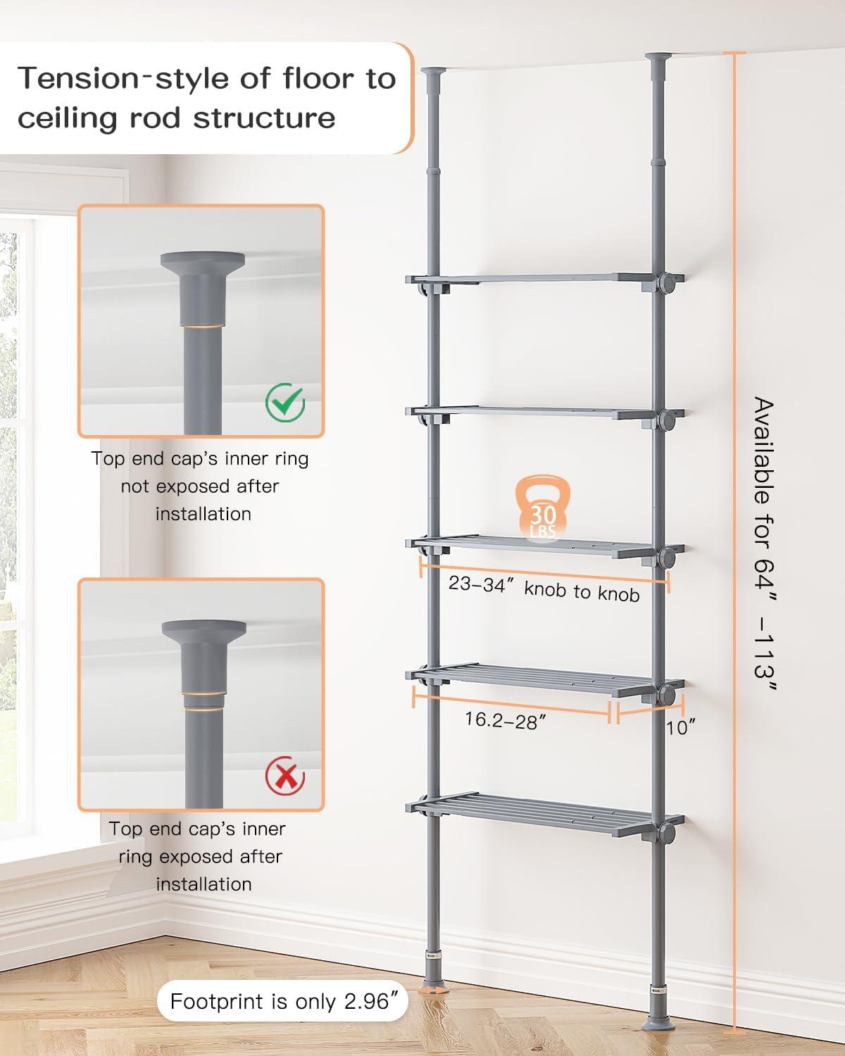 | Floor-to-Ceiling Tension Mount | Maximizes vertical space,no floor clutter |