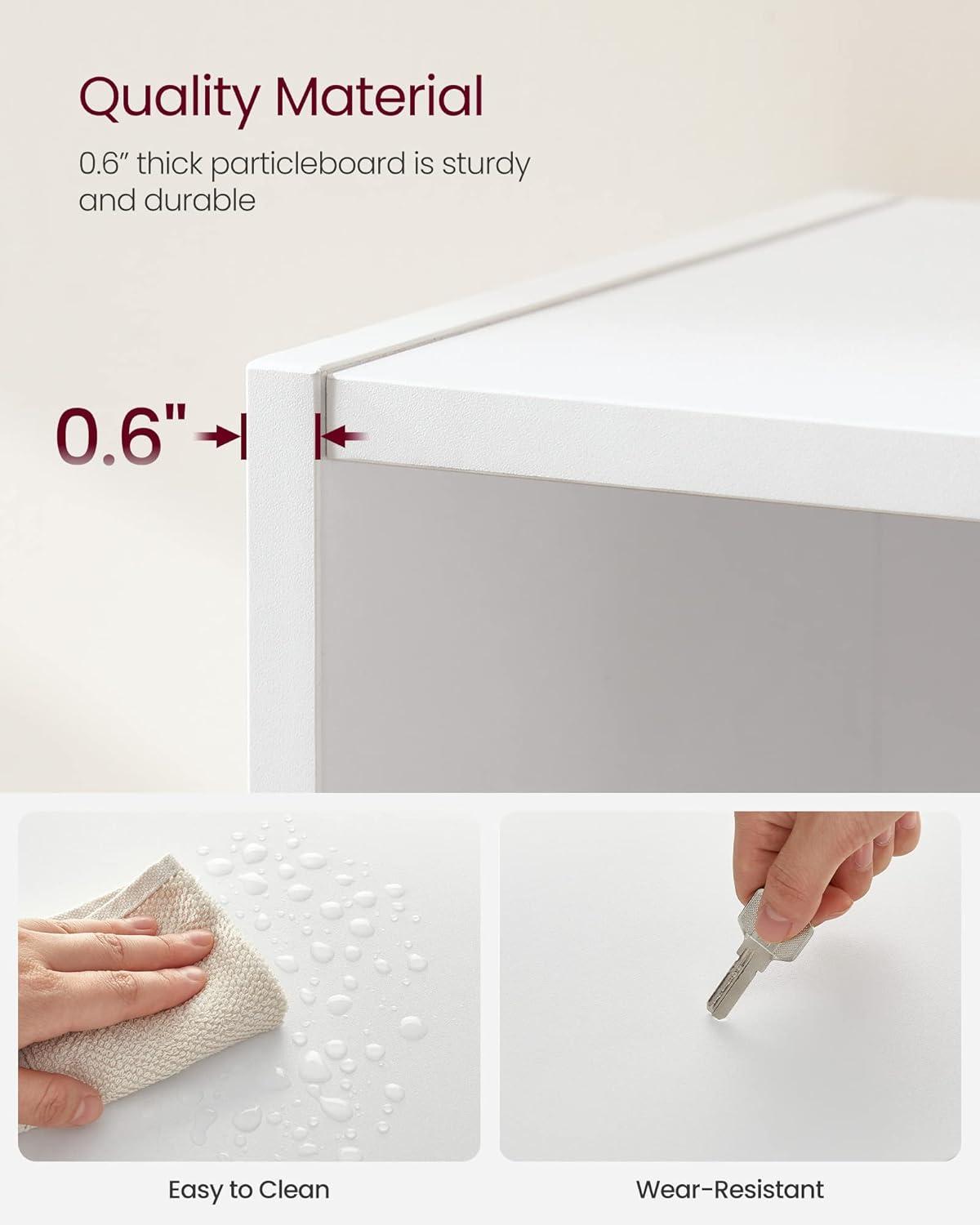 From the moment we unpacked this piece, its minimalist open compartment design immediately caught our attention. The clean lines and cloud white finish effortlessly blend with various decor styles, making it a versatile addition to any room. The well-thought-out 6-tier layout provides a balanced mix of open storage and display space, perfect for keeping our books, plants, and decorative items accessible and visually appealing. Notably, the adjustability of four tiers allows us to customize shelf heights by up to 1.2 inches, which is a practical feature when accommodating larger books or unique keepsakes without compromising the overall aesthetic.