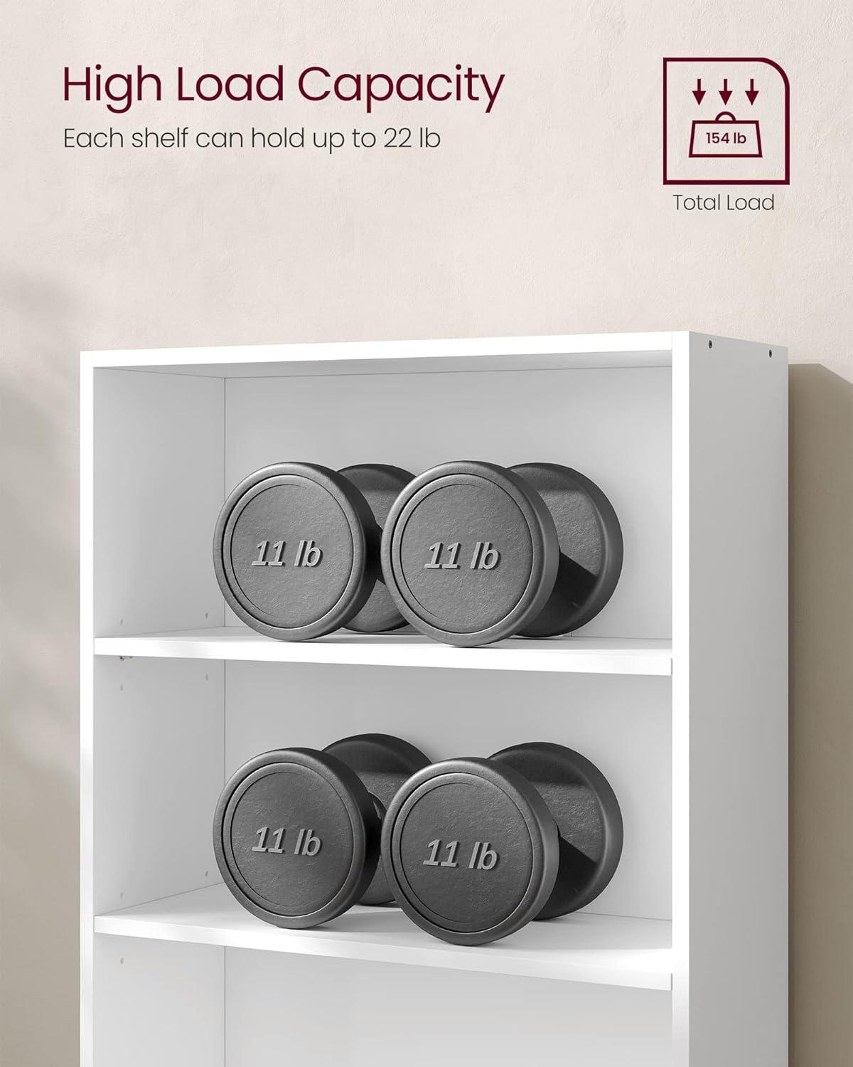 | Compact footprint optimizes vertical space making it perfect for smaller rooms. | Weight capacity maxes out at 22 lbs per shelf, which may not suit very heavy collections. |