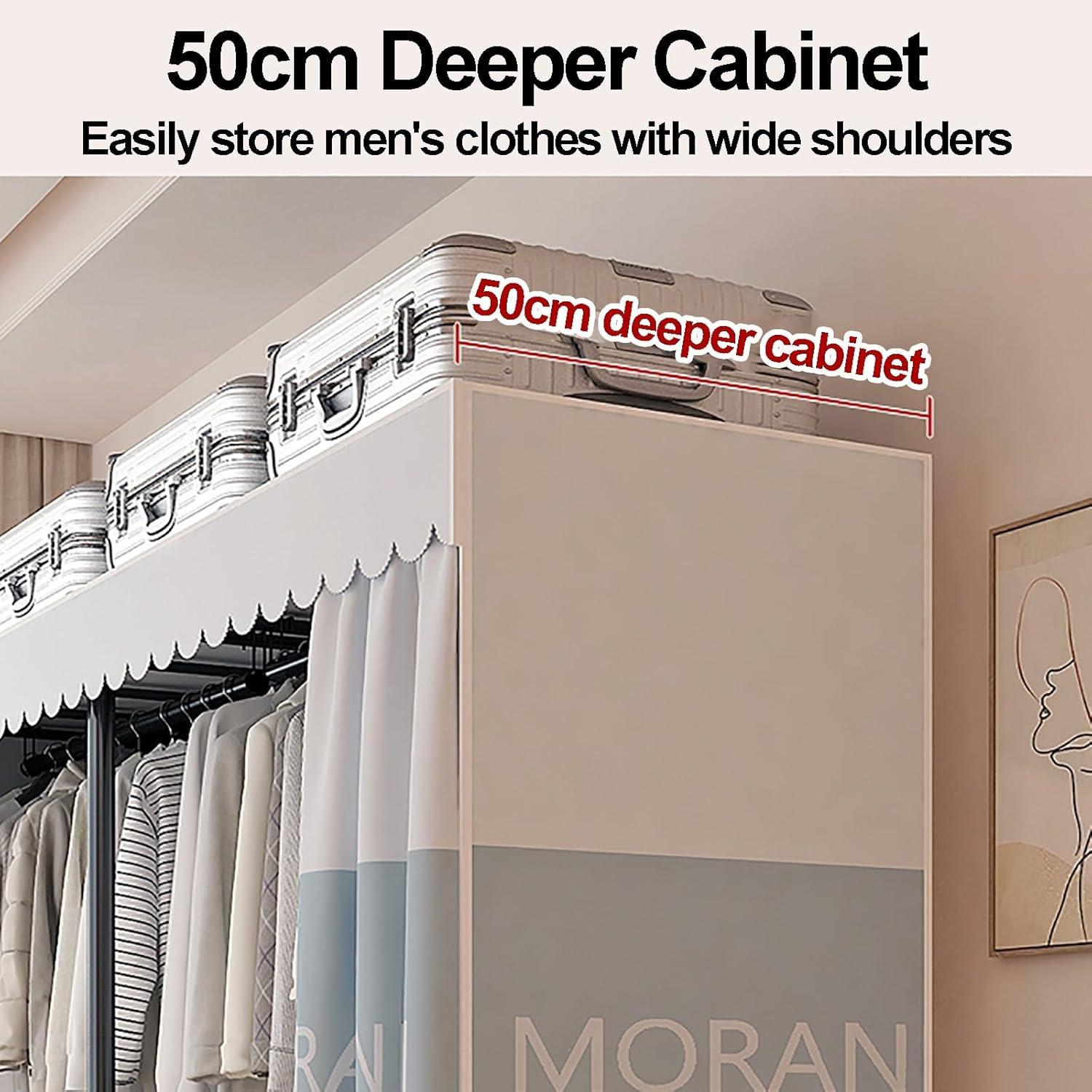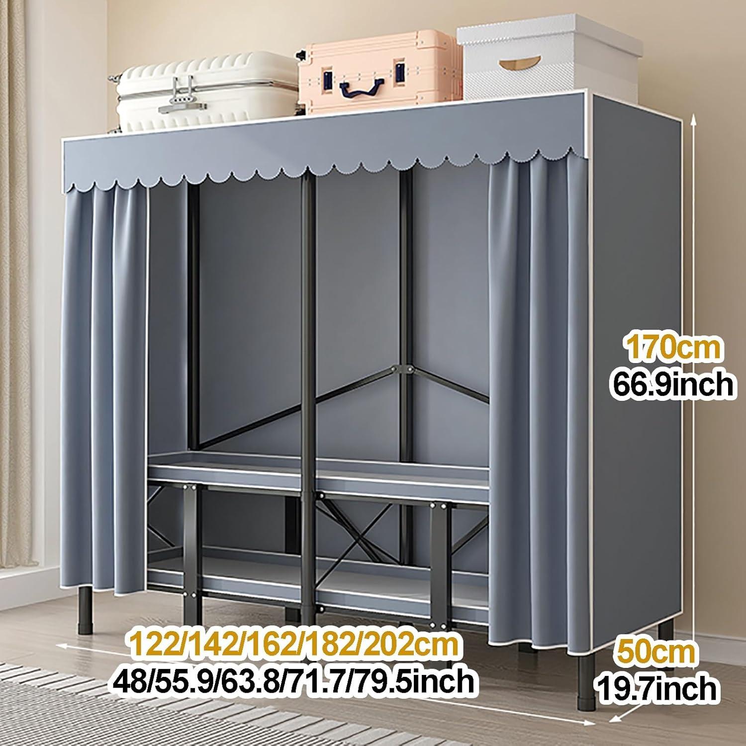 After spending quality time with this portable wardrobe,we appreciate its blend of practicality and smart design. The robust steel frame holds up impressively under heavy loads, providing stability without bulkiness. Its foldable nature and lightweight build offer remarkable portability, making it an ideal choice for those who frequently rearrange or move. Setup takes just minutes and requires no tools, thanks to well-engineered joints – a huge plus for hassle-free organization. The non-see-through fabric cover not only protects garments from dust and light but also adds a clean, modern look suitable for various room decors.