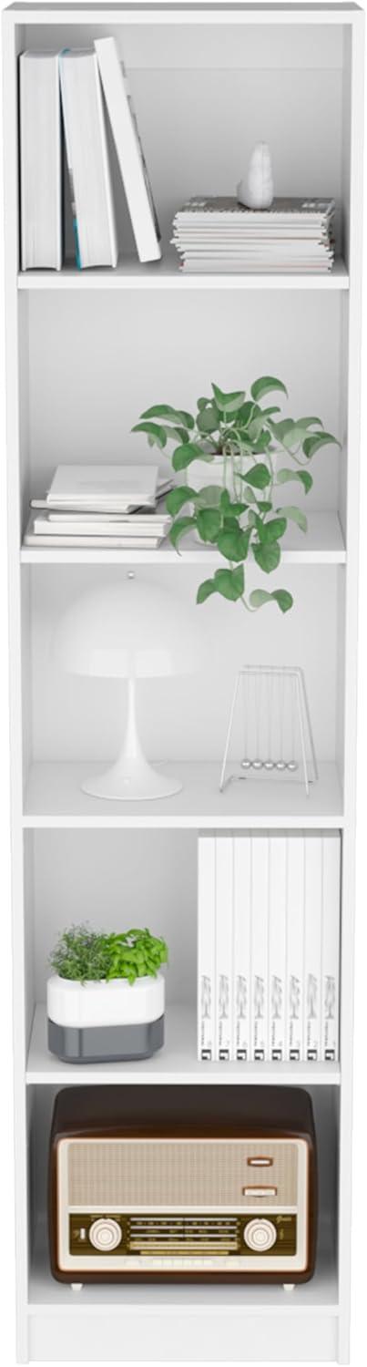 After spending considerable time with this tall, slender bookshelf, we appreciate how well it fits into compact spaces without sacrificing storage capacity. Its five spacious shelves are perfect for organizing a variety of items-everything from books to decorative pieces-while maintaining a clean, minimalist appearance.The engineered wood construction feels sturdy and durable, which reassures us about its longevity. Assembly was straightforward thanks to clear instructions, letting us have it up and ready in no time. Its slim profile made it an excellent solution for narrow hallways and small offices alike.