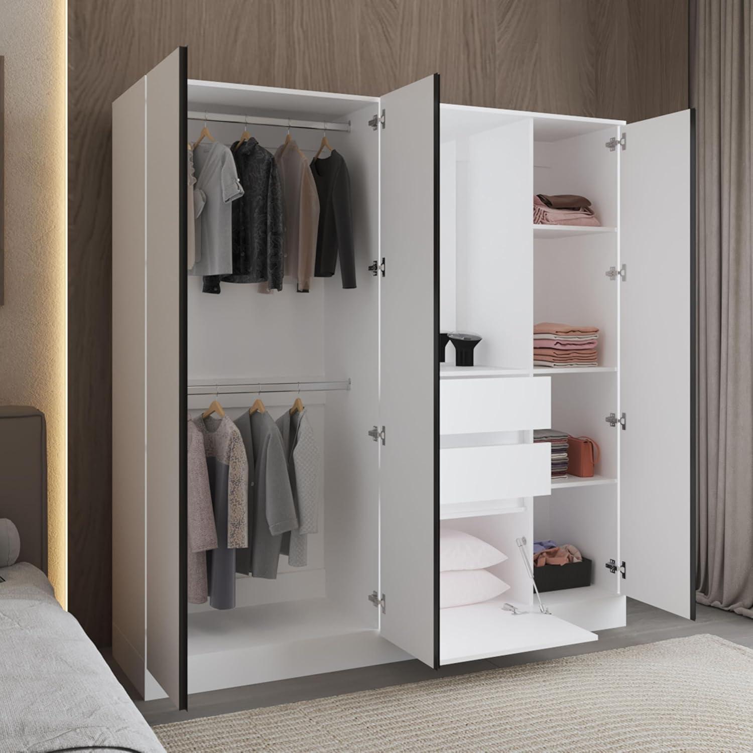 What we appreciate the most are the multiple compartments that adapt to different needs, complementing diverse wardrobe items without clutter. The shelves offer deep storage without wasting space, and the clean, bright finish inside enhances visibility for quick outfit choices. Here’s a quick overview of the interior layout features: