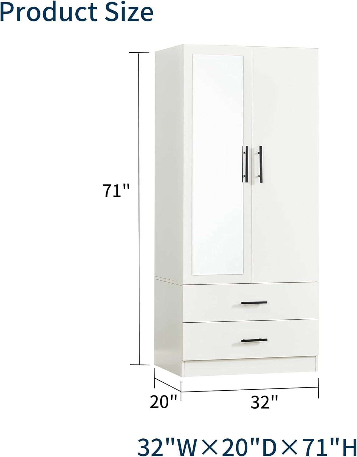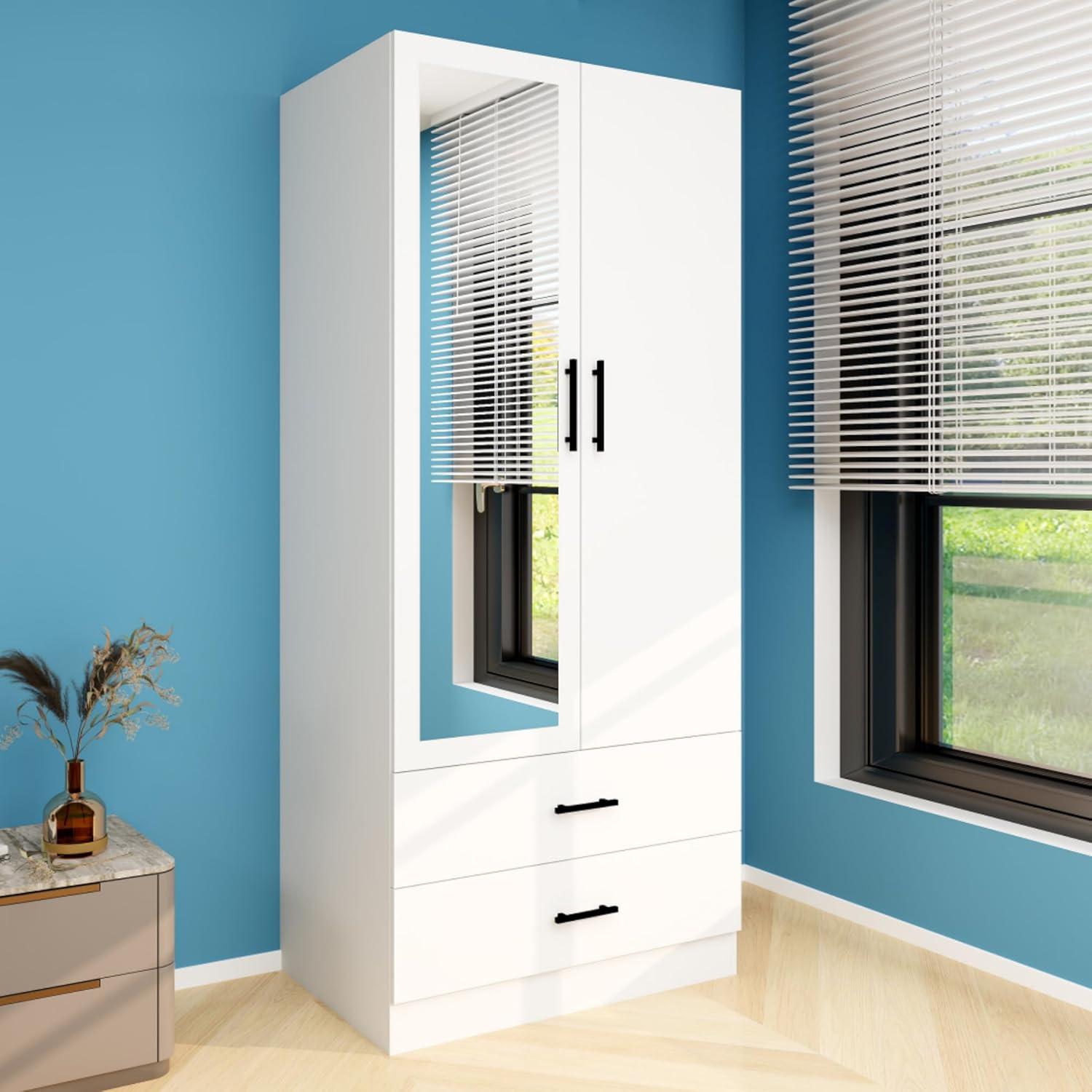 From the moment we set it up, this piece impressed us with its blend of functionality and style. standing tall at 71 inches, it offers ample storage through two spacious drawers and a sturdy hanging rod, perfectly accommodating everything from delicate blouses to heavy coats. The full-length mirror integrated into the front is a thoughtful addition, making outfit checks seamless while adding a sleek aesthetic to our bedroom. Crafted from high-quality wood, the wardrobe exudes a modern charm that complements various decor styles, enhancing the room’s overall atmosphere without overwhelming the space.