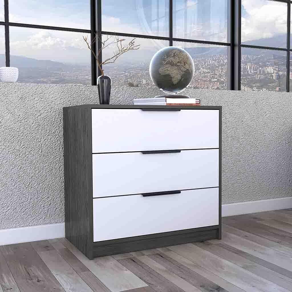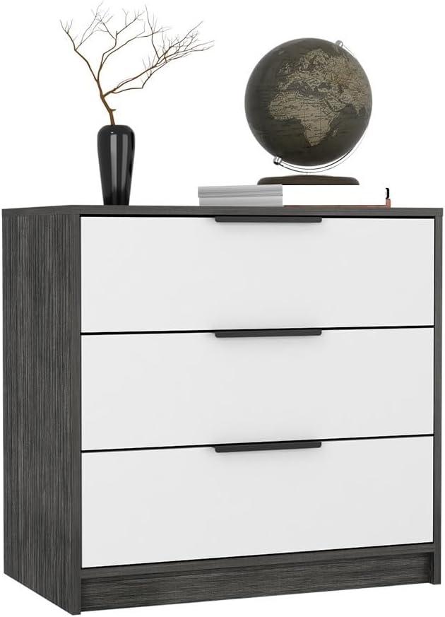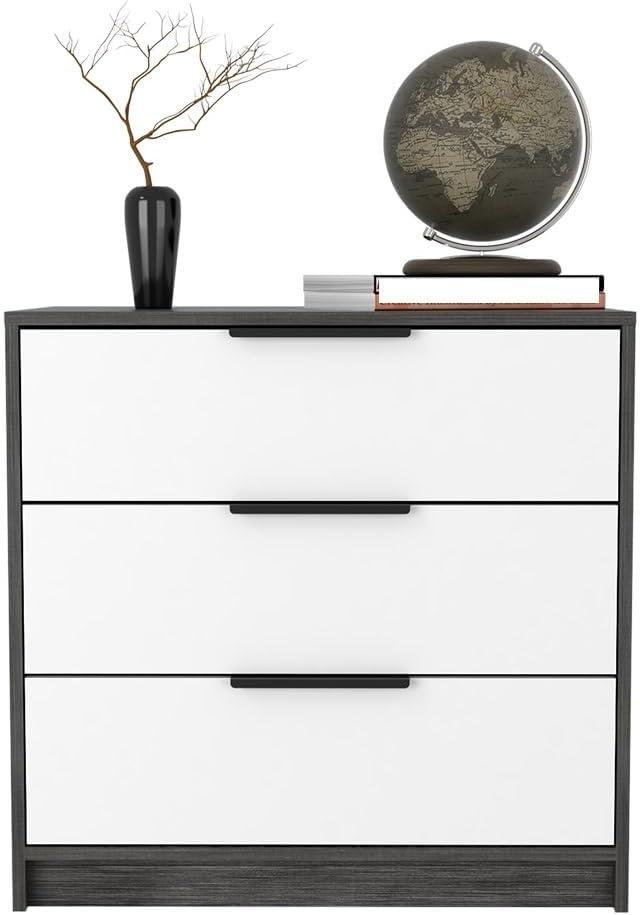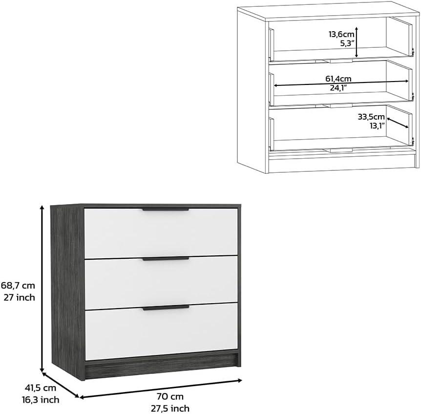 This dresser brings a fresh blend of simplicity and functionality to any bedroom setting. Crafted from durable particle board, it offers lasting quality with a smooth gray finish that complements a wide range of decor styles. The three spacious drawers,each measuring 7.4 inches in height and over 26 inches wide, provide generous storage for clothes, accessories, and essentials, helping us keep our spaces neat without sacrificing style. Its compact footprint of approximately 27 inches tall, wide, and just over 16 inches deep makes it perfect for both small bedrooms and cozy corners.