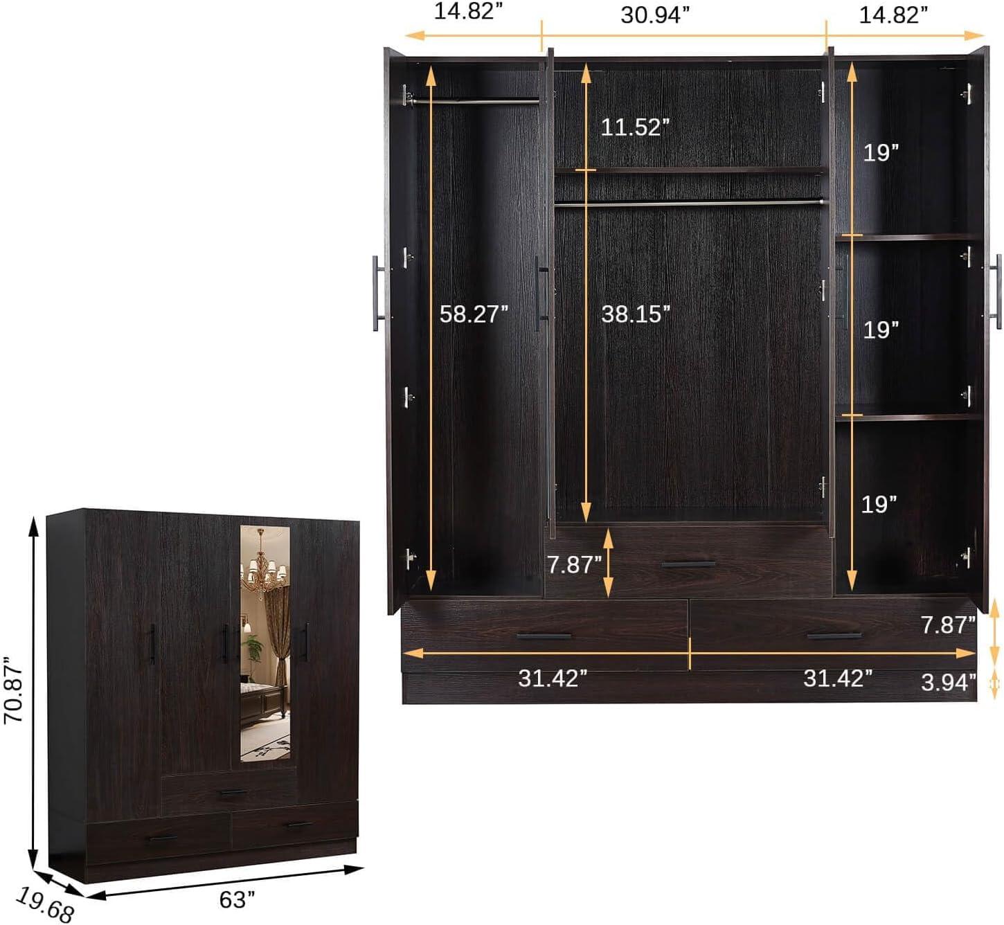 | 4 Doors & 3 Drawers | Organized storage for clothes & accessories |