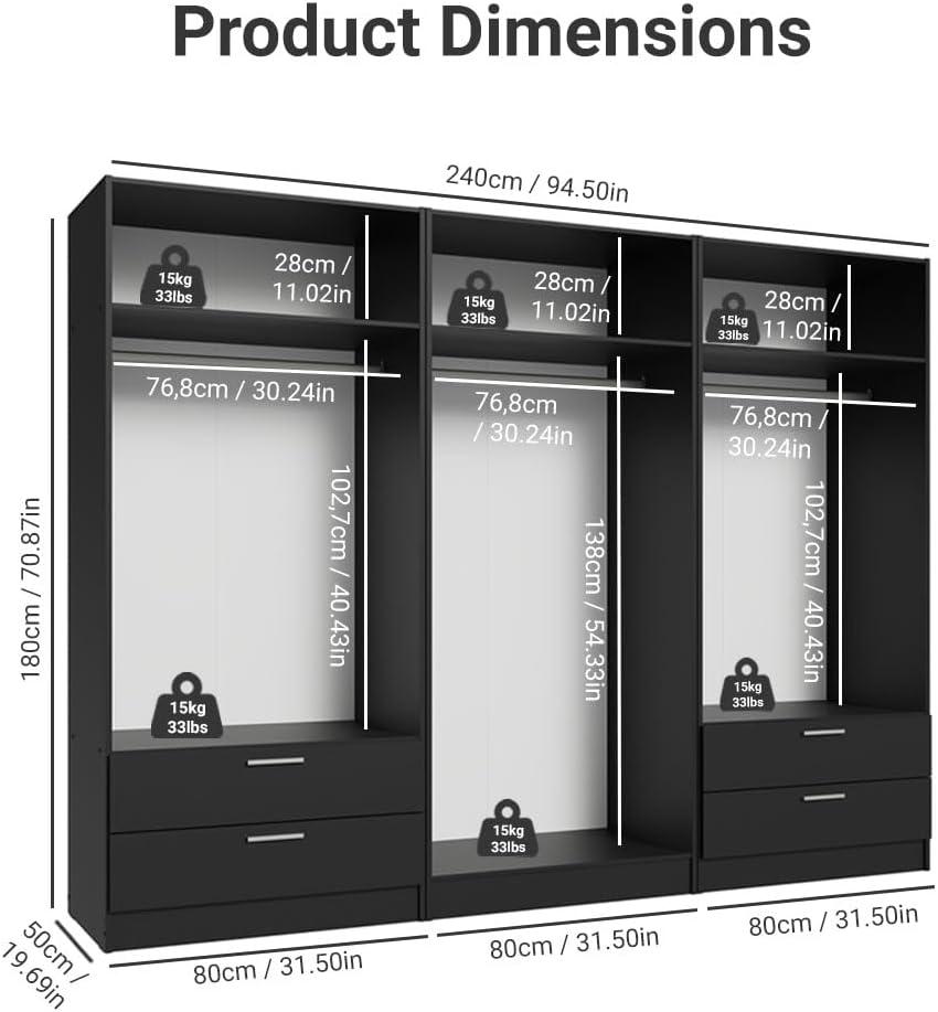 After several months of daily use, we’ve found this wardrobe to maintain its sturdy feel and clean aesthetics remarkably well. The high-quality particle board,finished with a durable coating,resists scratches and everyday wear,keeping the black exterior sleek and polished. The solid hanging racks have consistently supported heavy winter coats and lengthy garments without any sagging or warping,proving their resilience under substantial weight. Additionally,the spacious drawers glide smoothly,thanks to well-constructed mechanisms that have shown no signs of loosening or jamming despite frequent use.
