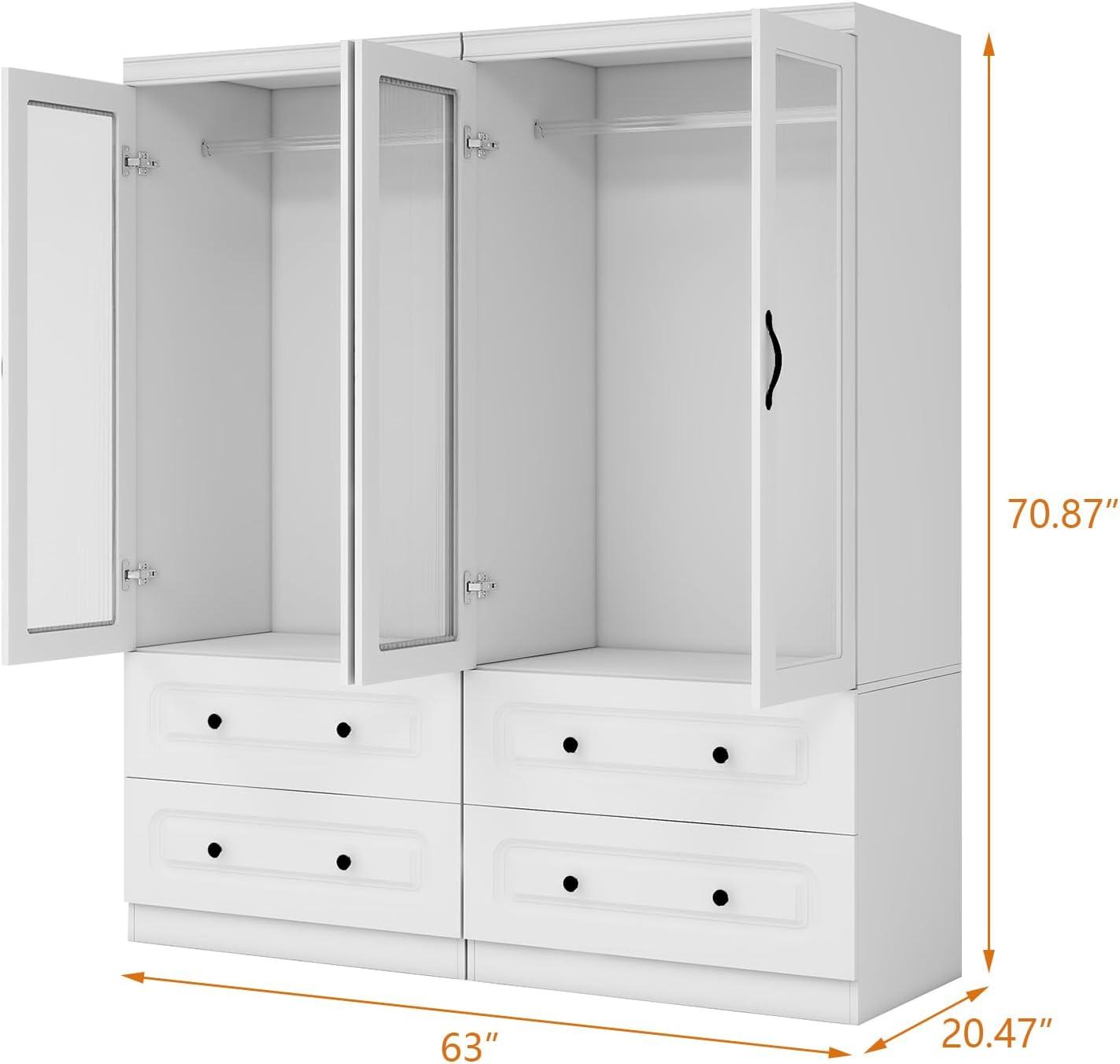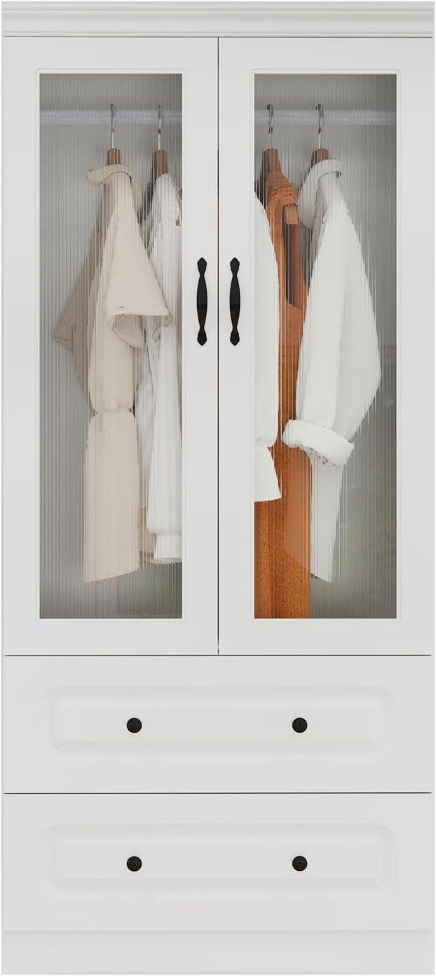 We appreciate how this armoire flawlessly blends contemporary style with highly functional storage solutions. its clean white finish brings a shining and airy feel to any bedroom, effortlessly complementing a wide range of décor styles-from minimalist modern to charming retro. The glass elements not only amplify natural light but also create a sense of spaciousness, turning the wardrobe into a subtle focal point without overwhelming the room’s atmosphere. With ample hanging rods, it easily accommodates a variety of garments, while the thoughtfully designed doors keep everything neatly tucked away.