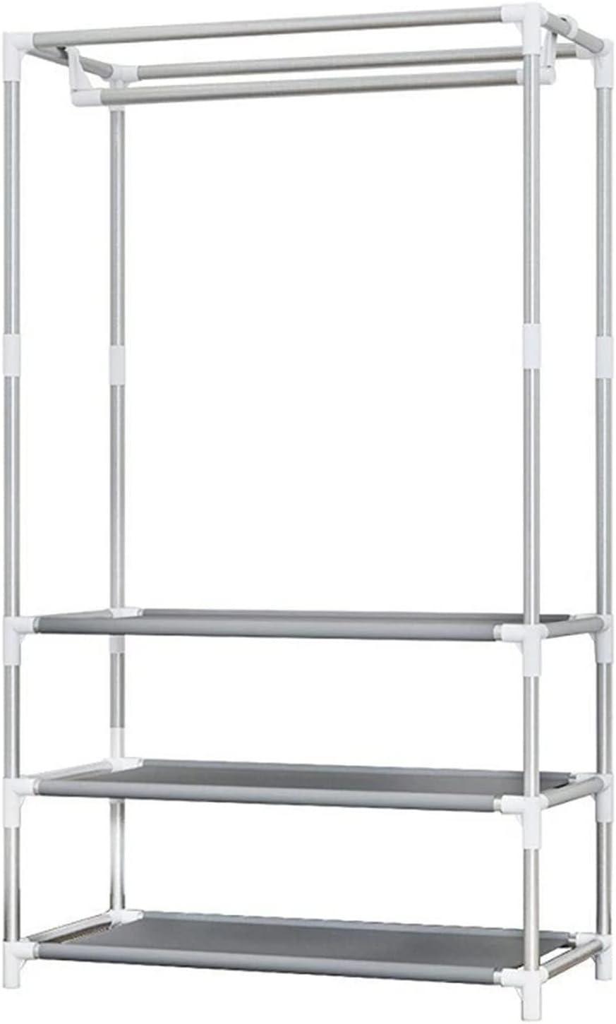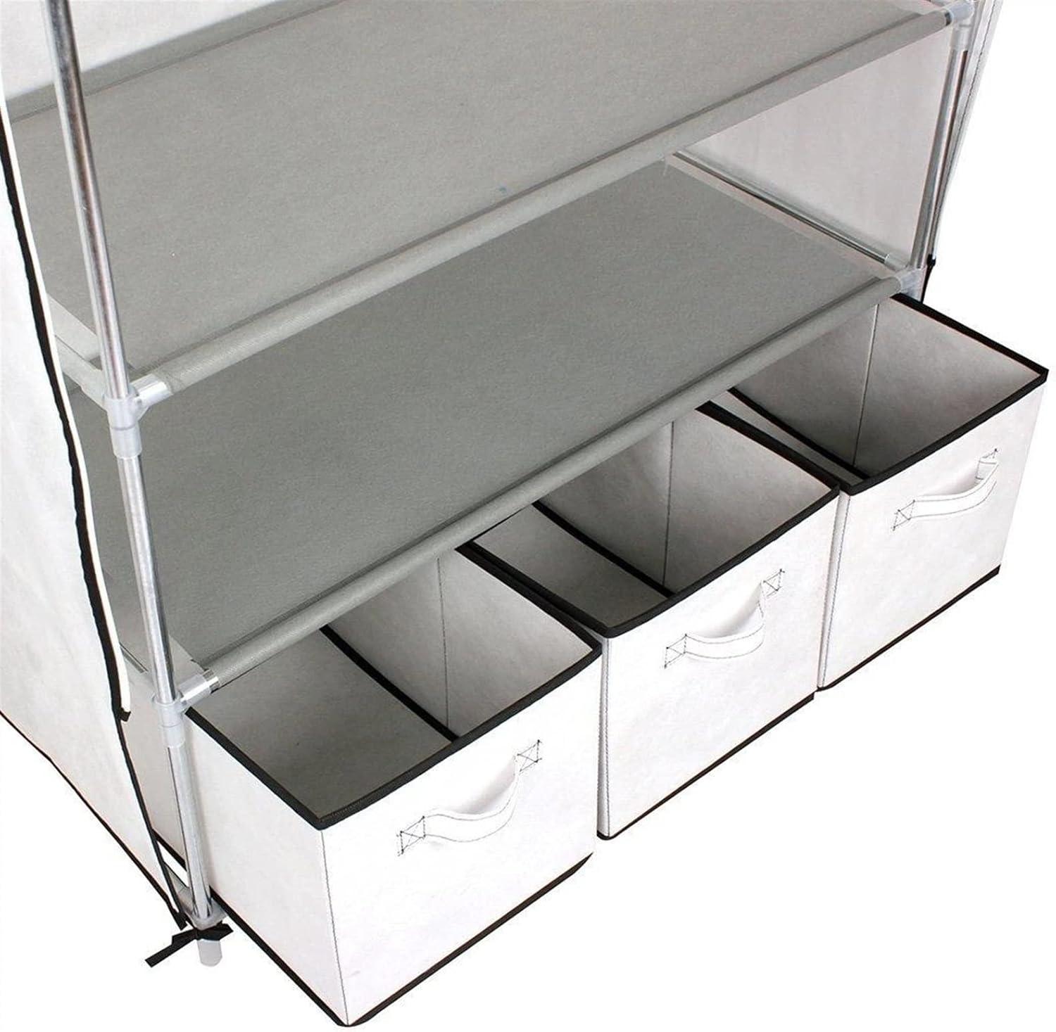 The movable hanging rod and three storage drawers offer versatile storage, accommodating both long garments and folded items.