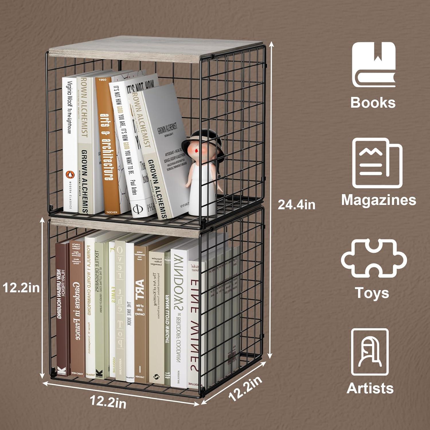 | Versatility | Use as bookshelf, storage basket holder, or display case |
