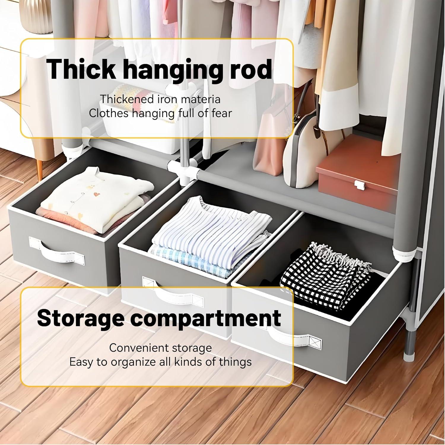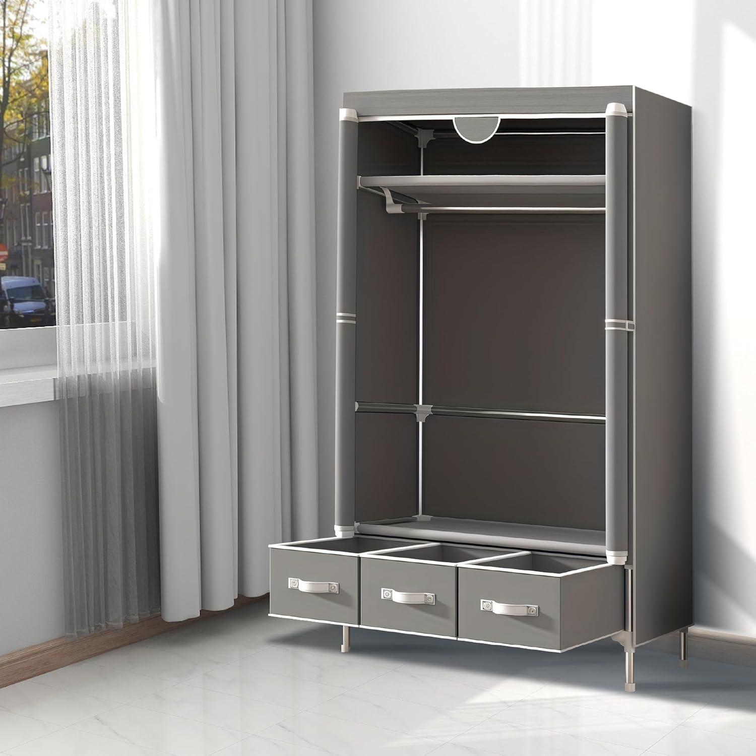 this Portable Wardrobe closet with Shelves & Drawers proves to be a smart, practical solution for anyone looking to tame clutter and make the most of limited space. Its lightweight design, simple no-tool assembly, and thoughtful storage features come together to create an organizer that fits perfectly into small bedrooms, dorms, or any tight corner. We appreciate how it protects our clothes from dust and moisture while staying versatile and durable enough for everyday use. If you’re ready to transform your space with ease and style, this wardrobe might just be the upgrade you’ve been searching for.Ready to maximize your space and elevate your organization? Check it out on Amazon now!