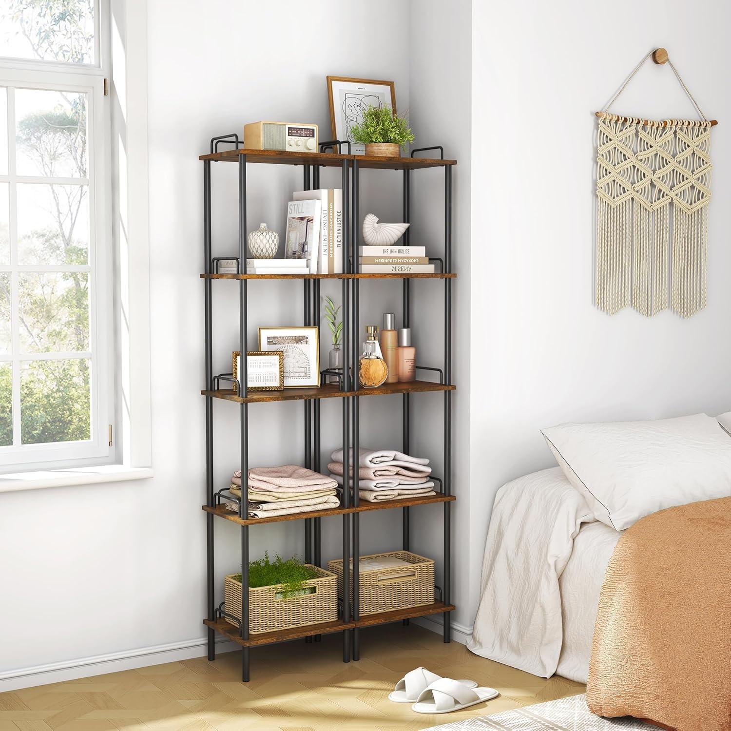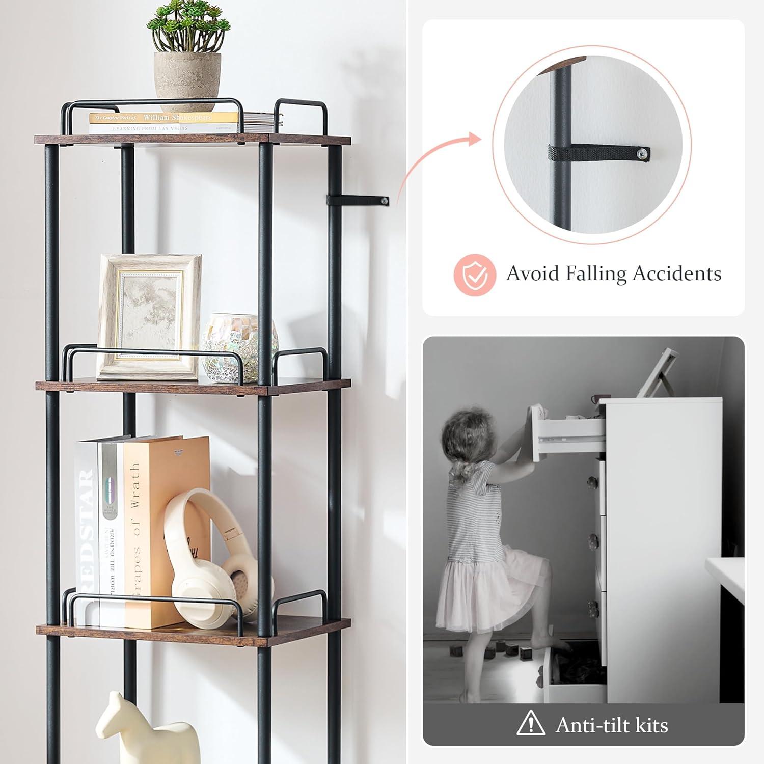 this 5-tier tall bookshelf strikes a great balance between functional storage and stylish design, ideal for those looking to make the most of small or awkward spaces. While it demands a bit of assembly and wall anchoring, its durability and aesthetic appeal make it a worthwhile addition to our homes.