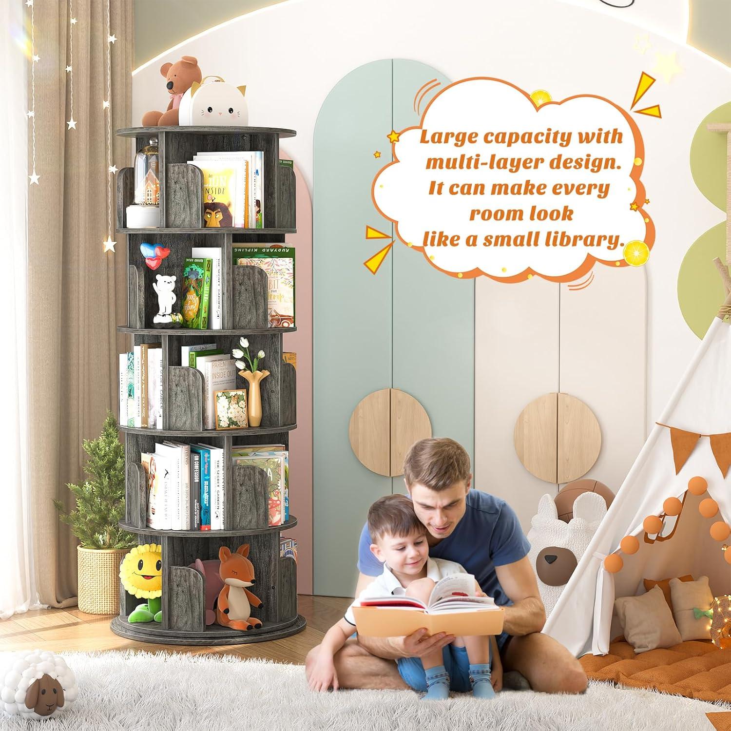 This revolving bookshelf is an excellent pick for anyone looking to maximize space without sacrificing style or function. Its 360-degree rotation offers easy access to a large number of items, making it perfect for tight corners that would otherwise go unused. The five-tier design with 20 compartments provides versatile storage-not just for books, but also for toys, photo albums, or decorative accents. We especially appreciate the flexibility to adjust the height by configuring 2 to 5 tiers, which means it adapts seamlessly to different rooms and needs. Whether you want a compact library setup in your study or a smart organizer in a bedroom or playroom, it blends practicality with a sleek Black Oak finish that complements a variety of décors.