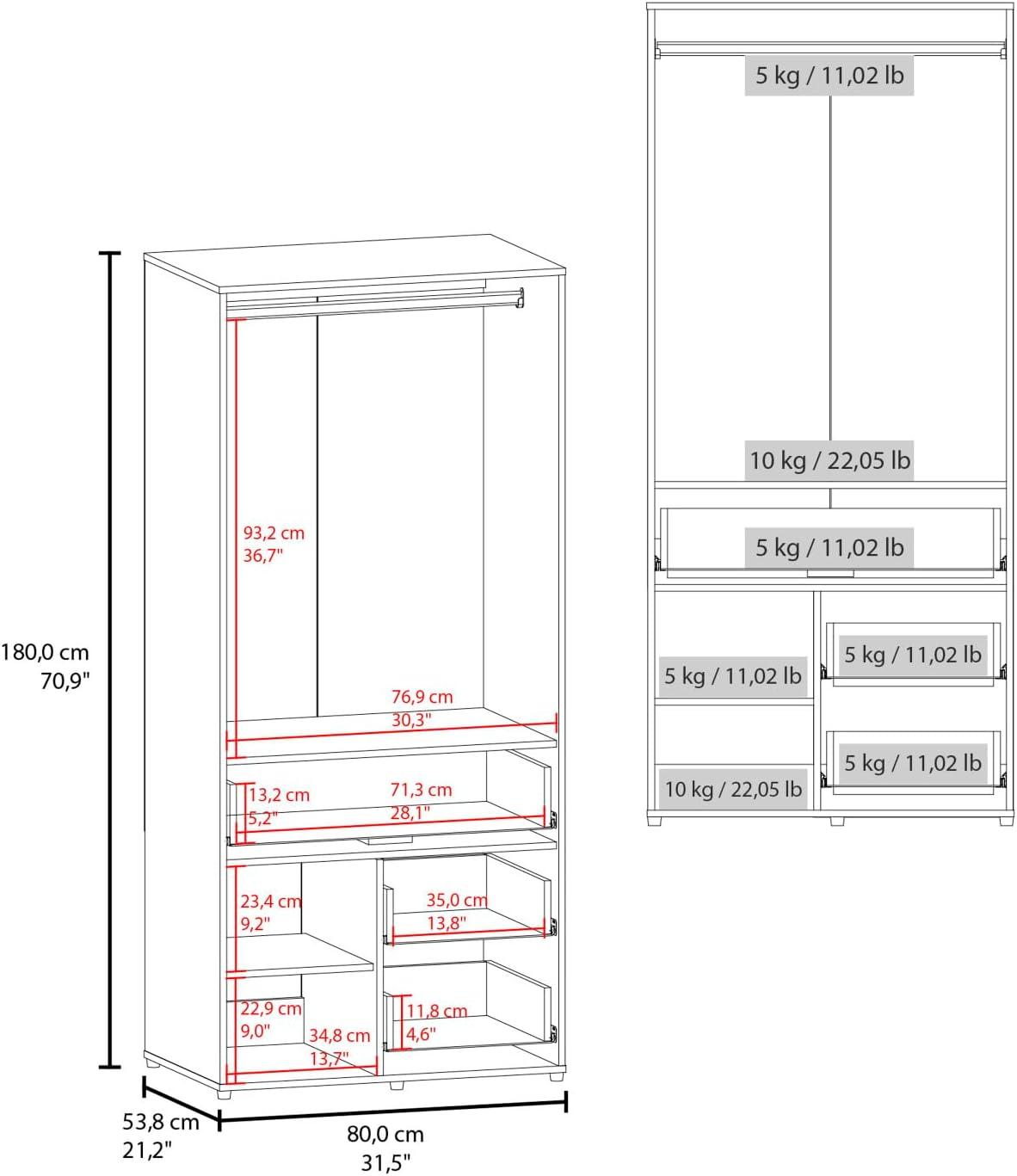 for bedrooms where every square inch counts, this wardrobe strikes an excellent balance between functionality and footprint. Standing just under 71 inches tall with a 31.5-inch width and a depth of 21.2 inches, it fits comfortably in tight corners without overwhelming the room. Despite its modest dimensions, the design maximizes vertical space and provides multiple storage options that keep clutter at bay, making it ideal for compact or minimalist bedrooms.