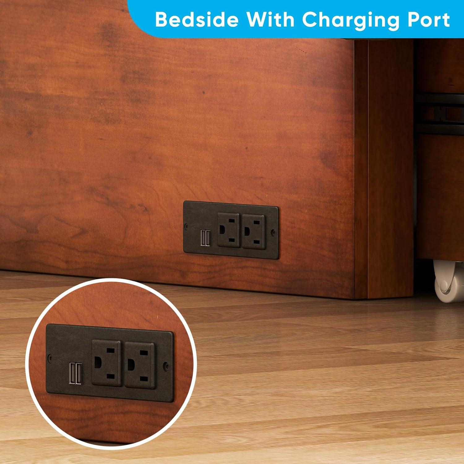The integration of the USB charging station into the cabinet bed adds a contemporary touch that genuinely enhances convenience.Positioned thoughtfully within easy reach, it allows us to charge multiple devices effortlessly while relaxing or sleeping. The charging station supports fast charging for smartphones, tablets, and other USB-powered gadgets, eliminating the need for extra cords or adapters cluttering the bedside area. this small yet critically important feature transforms the bed into a multifunctional hub, perfect for modern lifestyles.