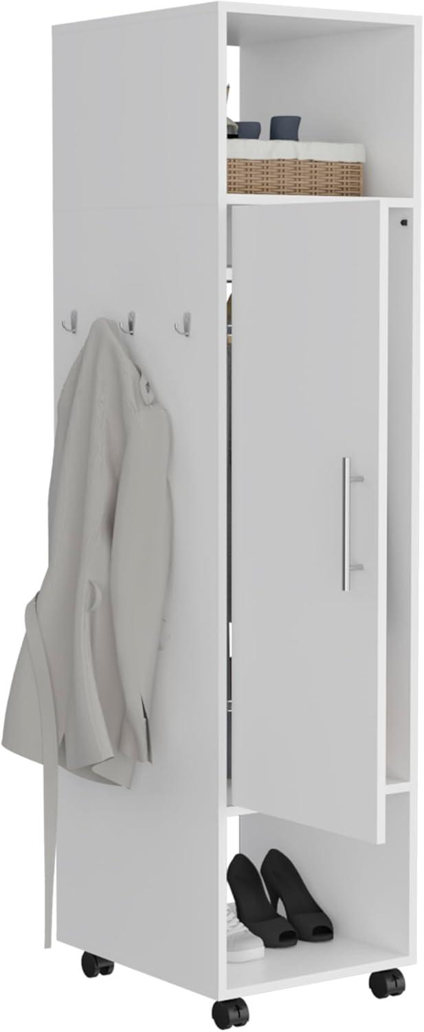 The ‍cabinet is crafted with a focus on durability and functionality,⁣ using ⁣quality‌ engineered wood⁢ that feels ‌sturdy and well-built. Its smooth white‌ finish lends a clean, minimalist charm that effortlessly complements various bedroom ⁢or storage spaces. the ​single-door design opens to reveal three ⁣spacious shelves, a hanging rod, and convenient hooks – all constructed​ with attention to detail ‌and stability.The addition of smooth-rolling ‍casters enhances mobility without⁣ sacrificing⁤ the ⁤cabinet’s solid feel. We appreciate how the materials ⁤used‌ strike a fine balance between ​robustness and lightness, making it both practical and visually appealing.