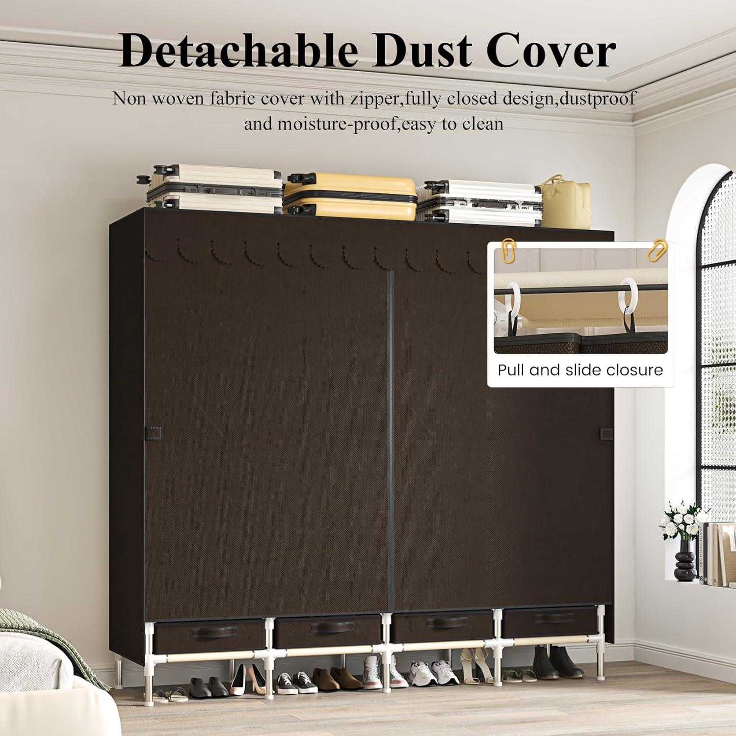 After spending considerable time with this portable wardrobe, we appreciate its spacious design and thoughtful organization features. The combination of 4 hanging rods, 4 drawers, and 3 storage shelves creates versatile space suitable for everything from long coats and work uniforms to smaller items like socks and scarves. The brown non-woven fabric cover not only protects clothes from dust but also adds a warm, subtle aesthetic that blends well in various room styles. Assembly proved straightforward thanks to the clear instructions and supporting video, though we advise pressing the metal tubes firmly into their connectors to ensure stability-a vital step for long-term durability and safety.