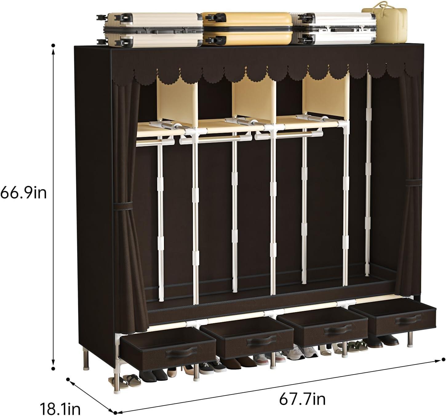 Organizing our wardrobes has always been a bit of a challenge,especially when space is limited and clutter tends to pile up quickly. That’s why we decided to try out the Portable Wardrobe with 4 Drawers and 4 Hanging Rods – a 67-inch tall sweater organizer designed as a sturdy yet easy-to-assemble temporary bedroom solution. After spending some time with this brown, fabric-covered unit, we found its spacious design, combined with thoughtful features like multiple hanging areas and reinforced drawers, made it an intriguing option for keeping clothes neat and accessible. In this review,we’ll walk you through our hands-on experience from assembly to everyday use,sharing both the strengths and considerations we discovered along the way.
