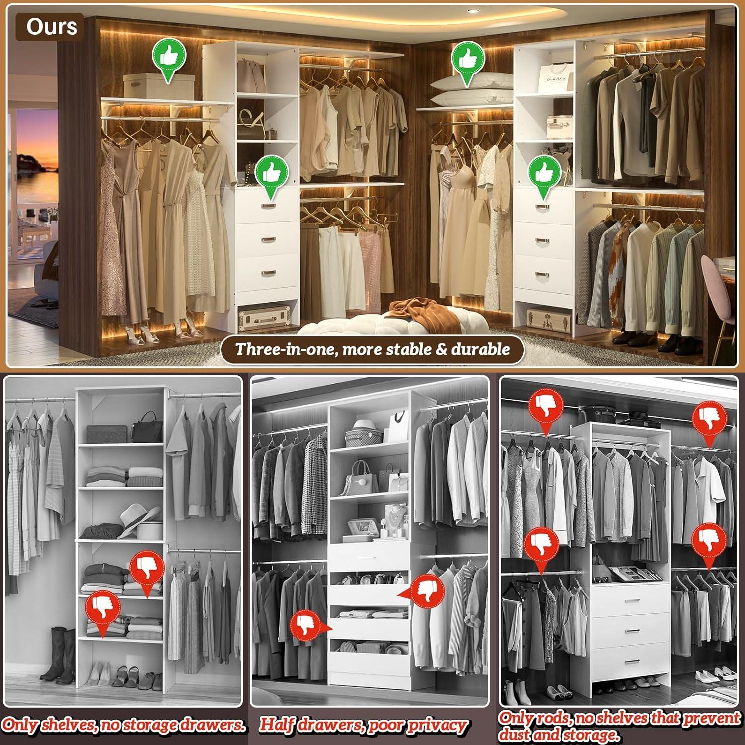 One of the standout features of this closet system is undoubtedly the three spacious drawers integrated into the design. These drawers are impressively deep,providing ample room to store a wide range of items from folded clothes and socks to personal accessories and bags. Many users have praised their capacity, noting how the drawers help maximize storage in even the most compact closets. The ability to tuck away items neatly keeps not only your clothes but also smaller belongings organized and easily accessible.