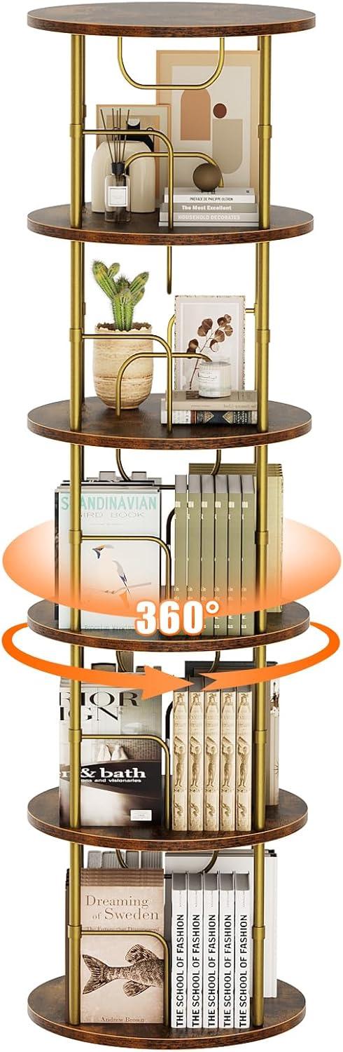 Maximizing Space and Style with a 360° Rotating 5-Tier Bookshelf