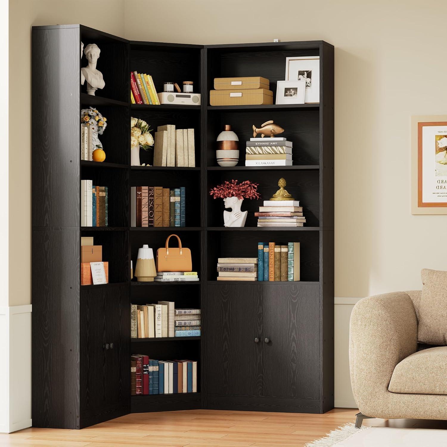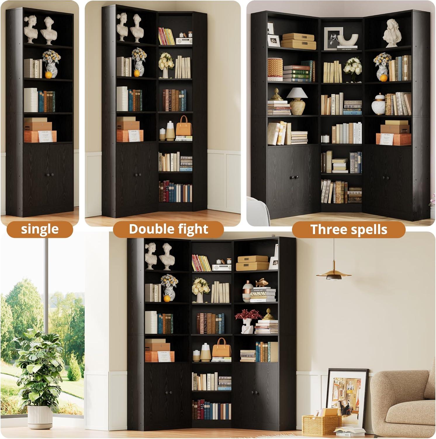 The bookshelf impresses with its smart use of corner space, transforming areas that frequently enough go unused into functional and stylish storage hubs. Featuring a sleek black finish, it effortlessly complements various interior styles, adding a modern and elegant touch without overwhelming your room’s decor. the design revolves around seven tiered shelves of varying heights, providing versatile storage options that cater to books, decorations, and cherished collectibles alike. below the open shelving, two spacious cabinets offer hidden storage, ideal for organizing sundries or less visually appealing items, helping maintain a neat and uncluttered habitat. the cabinet doors are thoughtfully enhanced with anti-collision components, ensuring smooth, quiet operation and long-term durability.