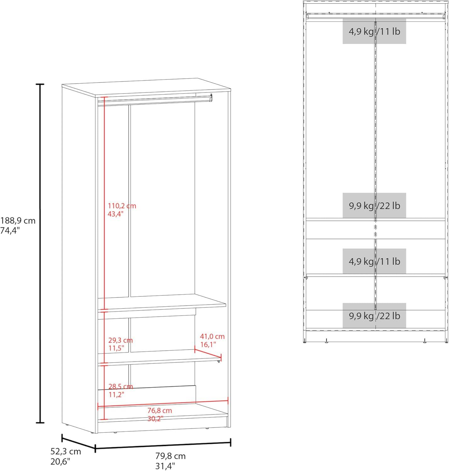 | Minimalist design easily blends with modern, industrial, or neutral decor | Limited internal customization-fixed shelves and rod may not fit all wardrobe needs |