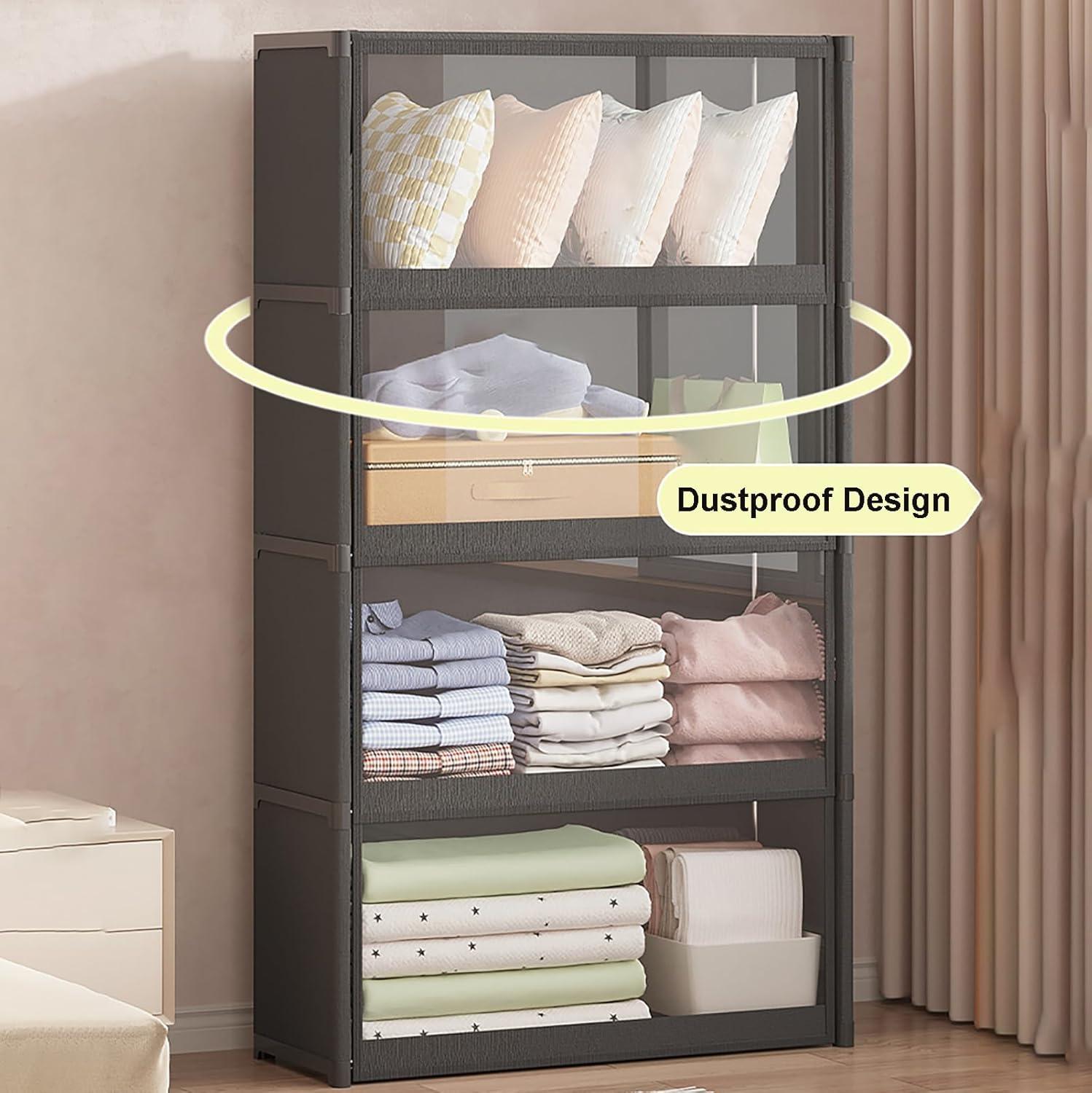 From our experience, this storage rack offers an excellent blend of practicality and style, ideal for anyone needing an efficient way to manage clothing in smaller spaces. its clear visualization doors allow quick access and overview of your wardrobe,saving precious time when choosing outfits. The dust cover is a thoughtful touch, providing breathability while keeping garments protected from dirt and dust. Assembly is straightforward and quick, making it perfect as a temporary solution or a permanent addition to your bedroom, cloakroom, or even a dorm room. The stable construction paired with moisture-resistant materials adds reassurance that this organizer will hold up well in everyday use.