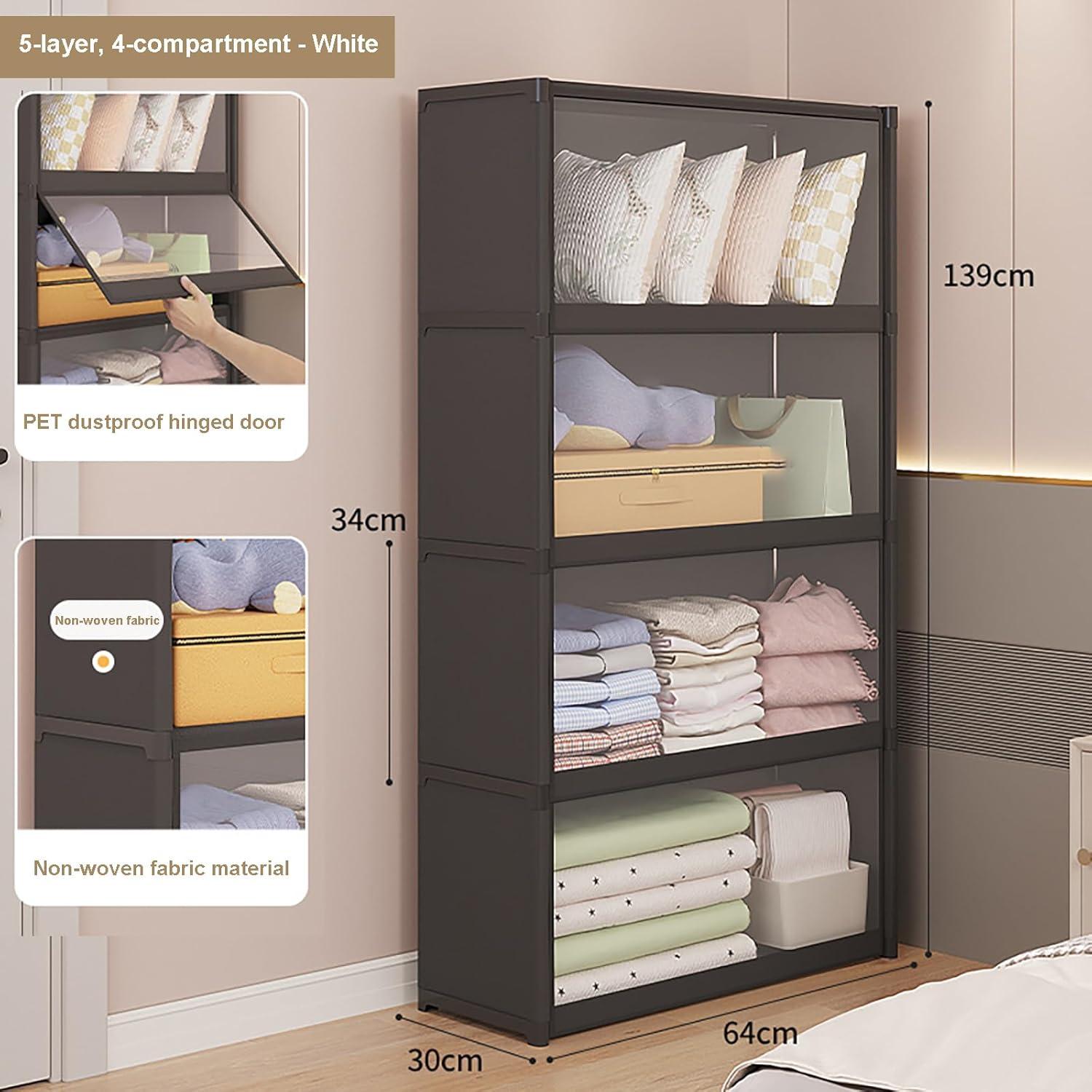 Maximizing space is effortless with this compact storage solution measuring 64x30x139 cm. Its vertical, 4-layer design optimizes narrow corners or limited floor spaces, making it ideal for everything from cozy bedrooms to busy cloakrooms. We appreciate the 34 cm height difference between shelves, which accommodates various clothing types and accessories without wasted space. the clear visualization door lets us peek inside quickly, reducing the time spent rummaging and helping keep our room tidy. Plus, the large top surface doubles as extra storage, perfect for hats, bags, or decorative items-giving us multiple organizational layers without extending the footprint.