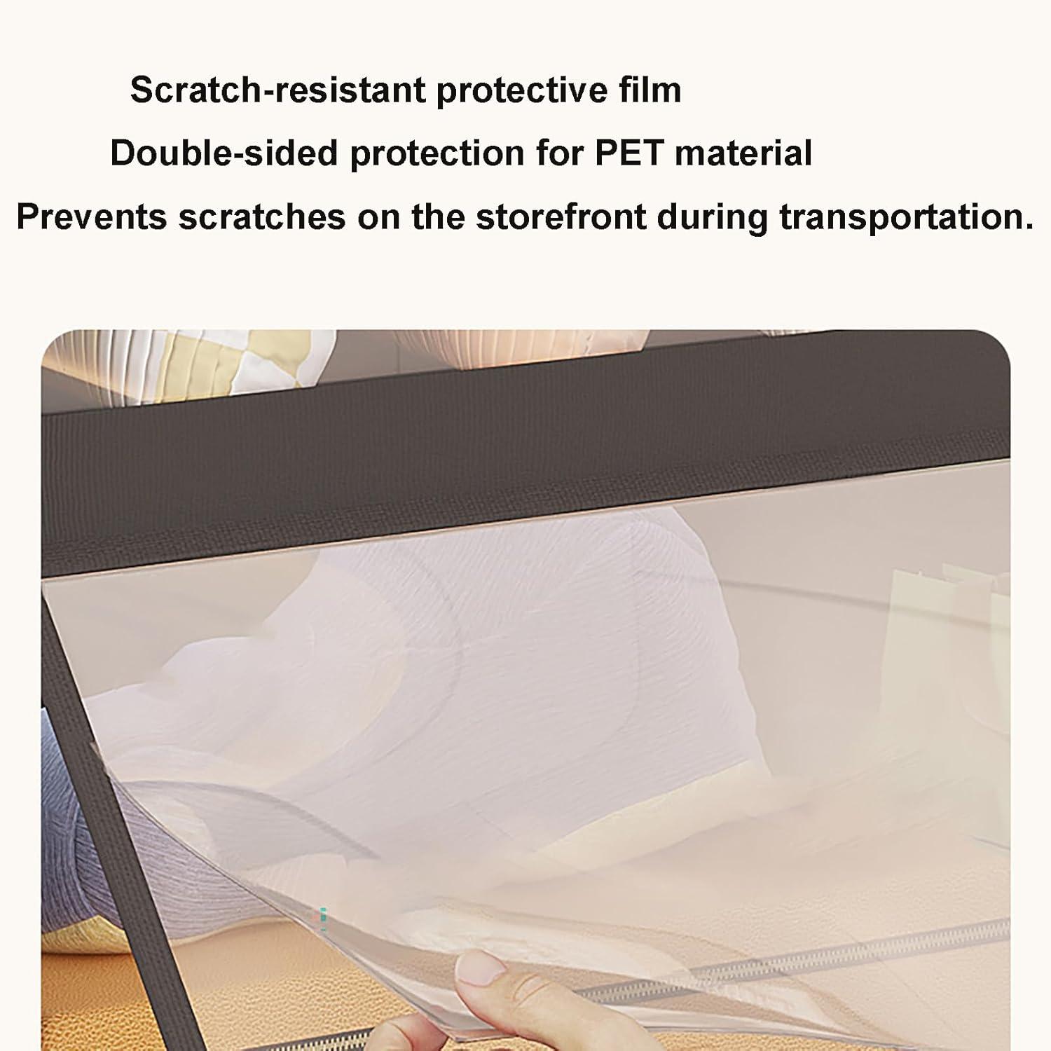 Beyond convenience, the lid door offers excellent defense against dust and dirt. Crafted from breathable yet durable materials, it keeps our garments fresh and clean, providing an ideal environment for long-term storage. the cover resists moisture and dust build-up thanks to the smooth PET surface, which is also easy to wipe clean. This combination of airflow and protection ensures our clothes stay pristine while concurrently offering practical storage solutions.