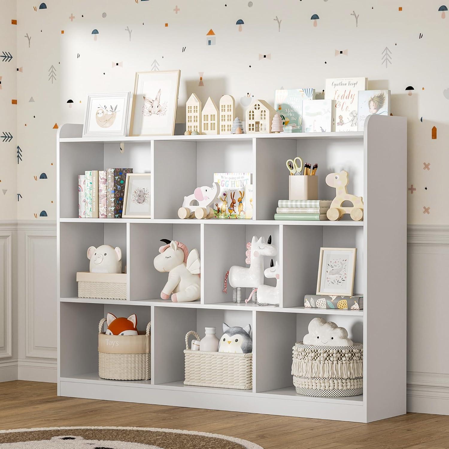 | Includes 10 cubbies providing ample organization options for books, toys, and decor. | Limited color options – only available in white, which may show dirt or wear more easily over time. |