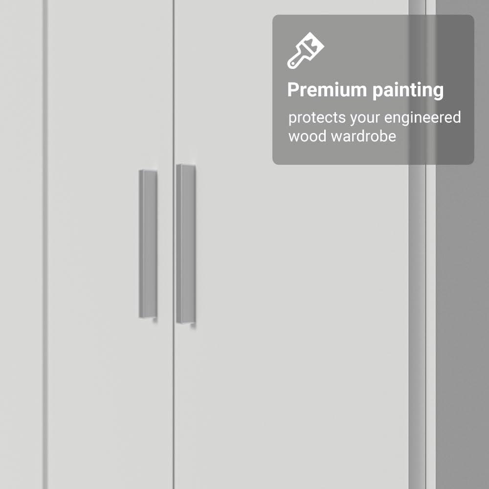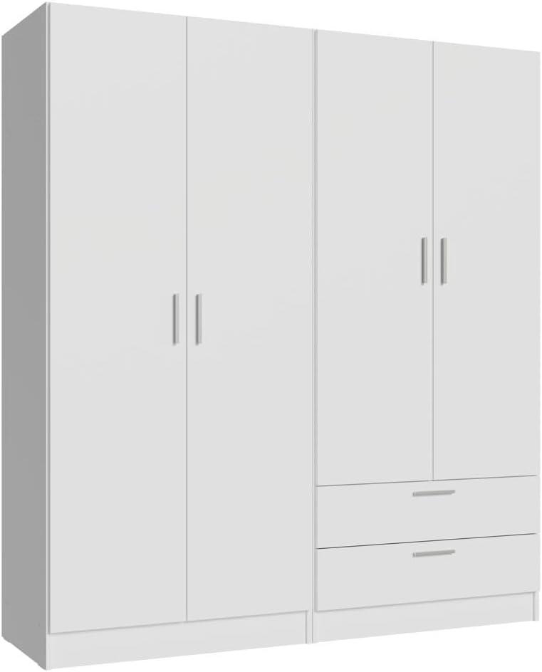 From the moment we unpacked this wardrobe, its well-thoght-out design impressed us. The combination of four doors and two drawers offers a spacious and organized habitat,perfect for storing everything from bulky coats to delicate accessories. The clean white finish adds a fresh and modern aesthetic that easily complements any bedroom or guest room decor. What truly stands out is the balance between open hanging sections and upper shelves, providing flexible storage options that accommodate different clothing types. It feels like a smartly crafted piece designed to enhance your space while maintaining elegance.
