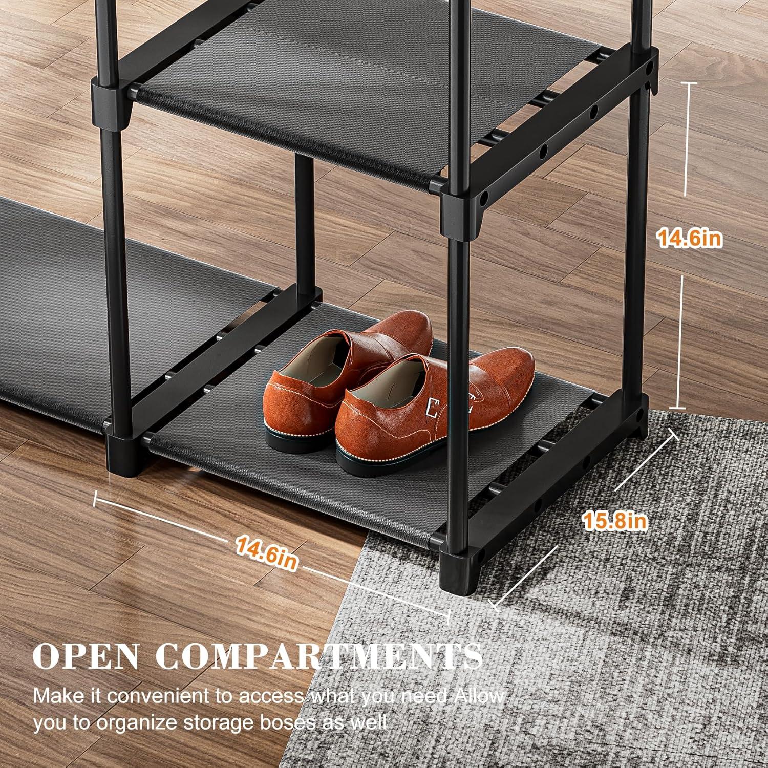 The open design immediately appeals to those who dislike fabric covers hiding their clothes. with two hanging rods and four shelves, the organizer offers versatile storage options that adapt to various wardrobe needs. We especially appreciated the flexible middle rod that can be removed to accommodate longer items like gowns or coats. This multifunctional piece works just as well in a bedroom, dorm, or rental space, serving both short-term and long-term storage needs efficiently. Bearing capacity is respectable, with shelves rated for 20 lbs and hanging rods for up to 50 lbs, making it a reliable staple for neat and visible clothing institution.