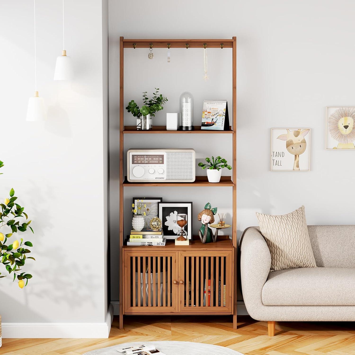 Organizing our living spaces while adding a touch of style can sometimes feel like a challenge, but the Bookcase with Drawers, 4-Tier Bamboo Bookshelf Ladder Shelf in walnut offers an intriguing solution. With its tall, narrow design, natural bamboo construction, and a combination of open shelves, hooks, and a hidden cabinet, this piece promises versatility for any room-from the living room to the office or bedroom. After spending some time assembling and using it, we’re eager to share how it performed in terms of durability, capacity, and overall convenience in our daily routine.