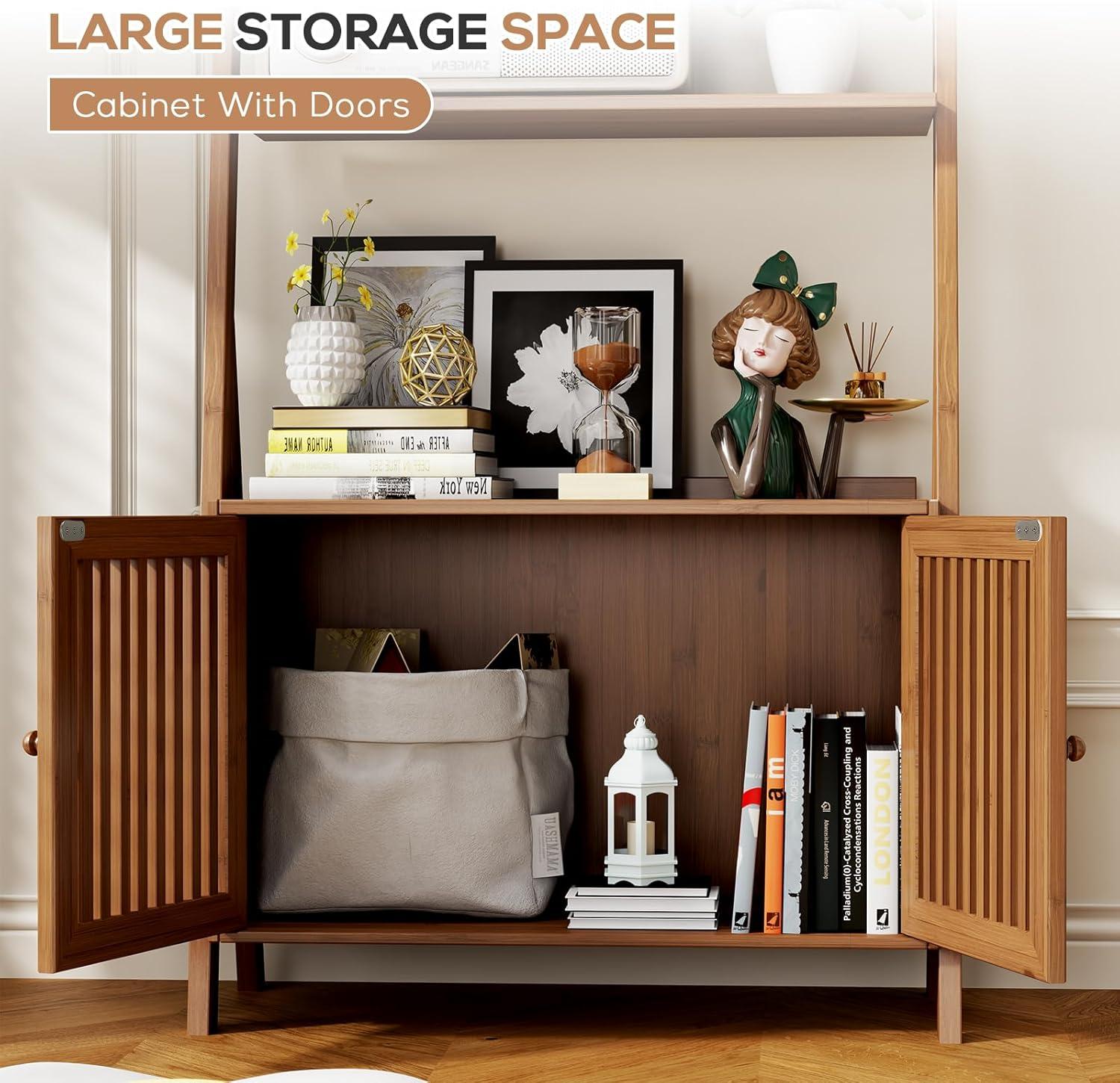 Over time, the sturdy bamboo construction has proven its strength and elegance. Bamboo’s natural resilience offers excellent stability, supporting up to 55 lbs per shelf, which means we can confidently display books, plants, and décor without worry. The smooth finish not only enhances the modern retro aesthetic but also helps preserve the material against wear. We appreciate how the combination of open shelves, hooks, and a lockable cabinet caters to both display and secure storage needs, promising lasting usefulness across various rooms.