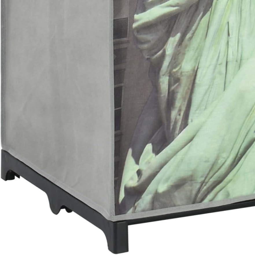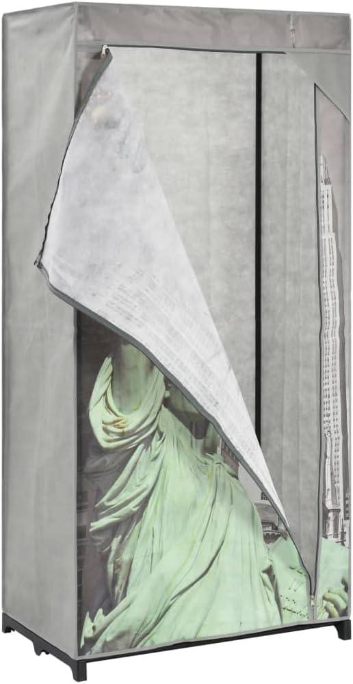 | Stylish grey multicolor New York pattern adds a modern flair to any room décor | Fabric cover could wear out quicker than solid wood or metal wardrobes |