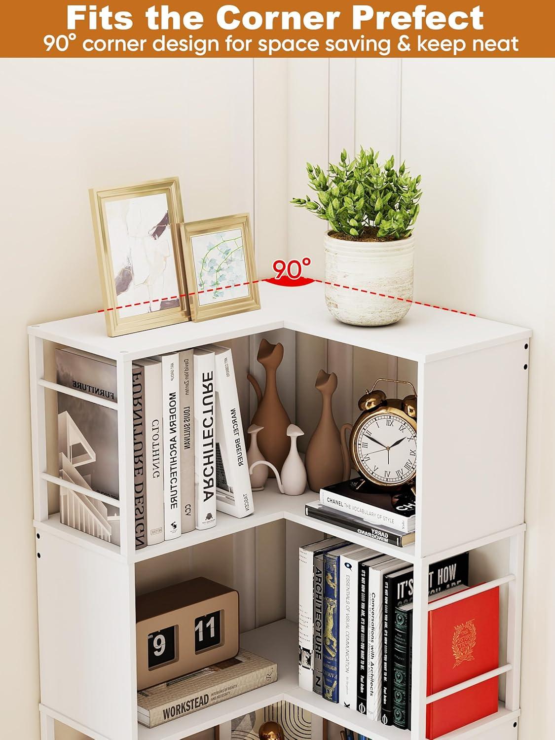 Maximizing vertical space without sacrificing precious floor area, this 7-tier corner bookshelf is a smart addition to any room where space efficiency matters. Its⁣ tall, L-shaped design fits snugly into corners, transforming underutilized areas into organized storage hubs. Each of⁤ the seven shelves measures approximately 11.8 inches in height, supporting up to 66 pounds, which means this piece isn’t just stylish but also highly functional for holding a variety​ of items.