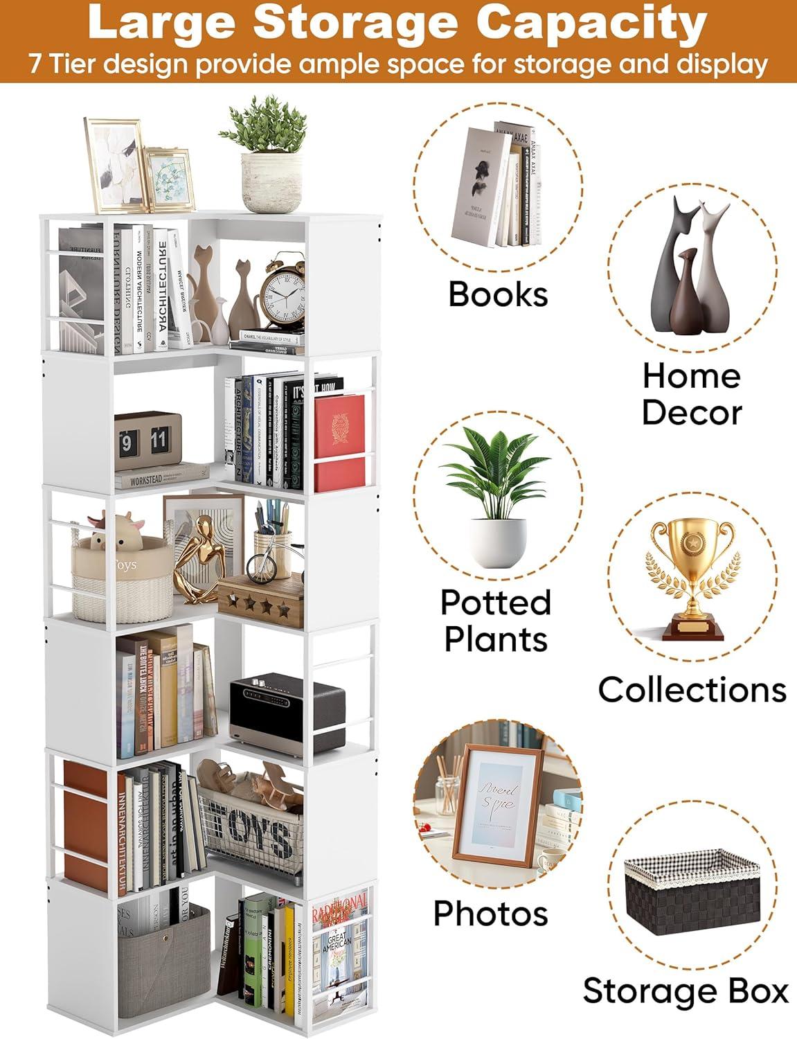After spending time with this 7-tier ‌corner‌ bookshelf, we appreciate how cleverly ‌it optimizes vertical space without crowding‌ your room. Its modern industrial design-combining sturdy metal framing with elegant⁣ wood shelves-blends seamlessly into ⁤a variety of interiors, from minimalist home offices to cozy living rooms. The generous shelf height and impressive weight capacity on each tier make it ideal⁤ for storing books,decorative items,plants,and even office supplies. Plus, the included anti-tipping hardware adds an essential layer⁤ of safety, especially for households with kids or pets.