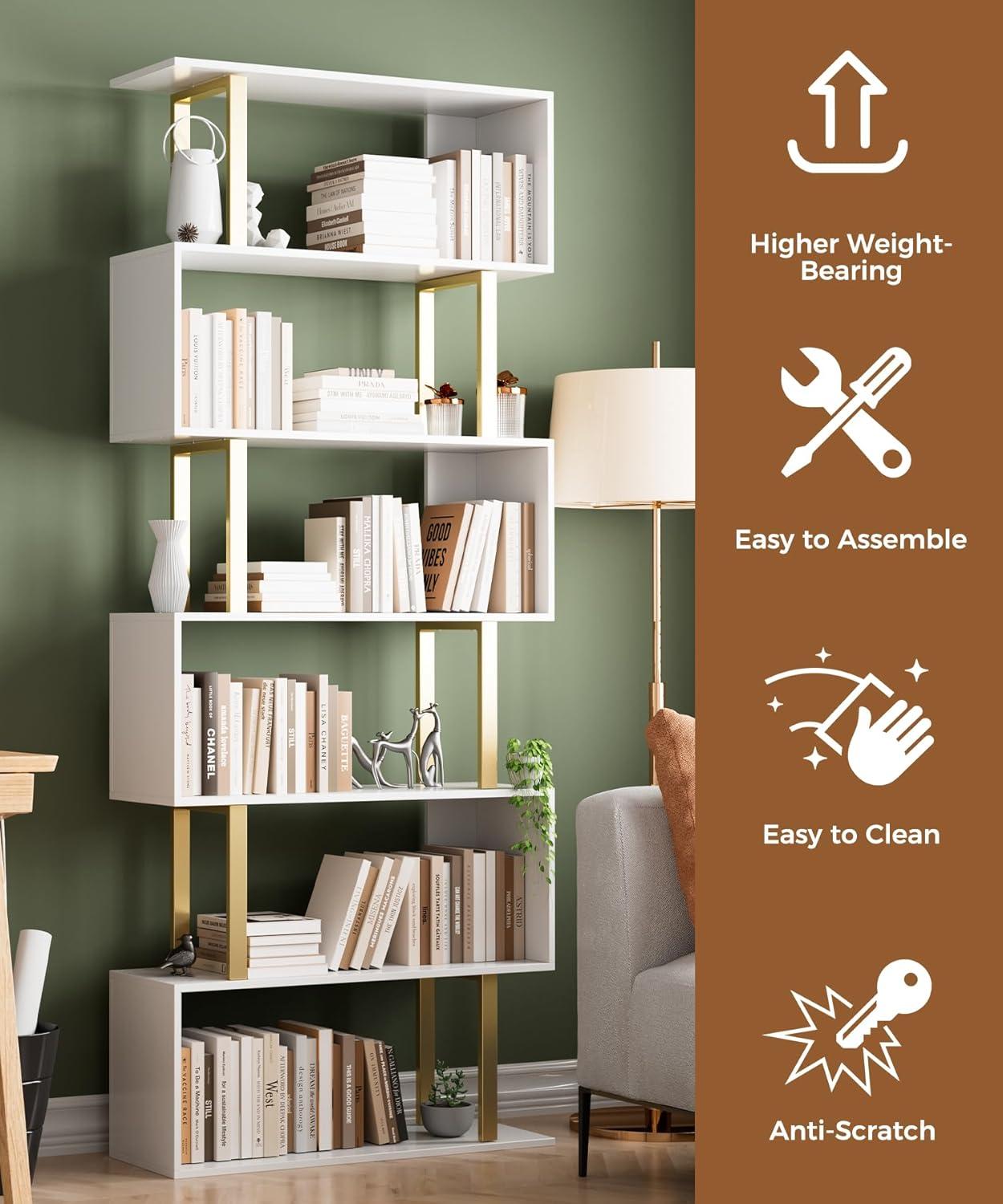 Ready to transform your room with this stylish storage solution? Check it out here: Gadroad 6-Tier S-Shaped Bookcase on Amazon