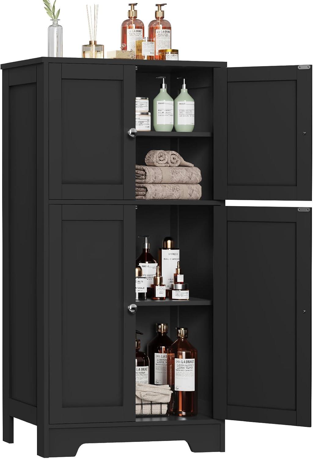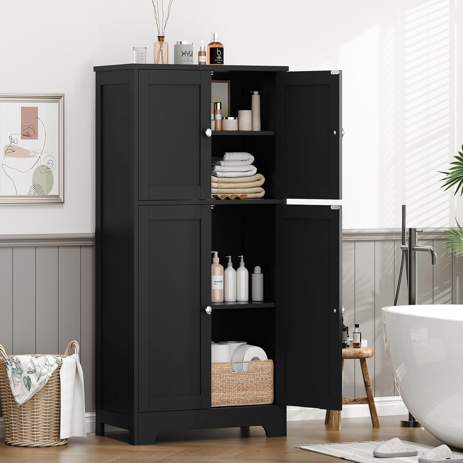 Upon unpacking, the sleek black finish instantly stood out, offering a modern yet understated look that fits seamlessly into various rooms-be it the bathroom, living room, or home office. The cabinet features two adjustable shelves that can be set at six different heights or removed entirely to accommodate taller or bulkier items. This flexibility makes it a fantastic all-around storage solution, capable of tidying up clutter such as toiletries, books, or kitchen supplies. the design thoughtfully incorporates a four-door layout that keeps contents discreet and protected from dust and moisture, especially in humid spaces.