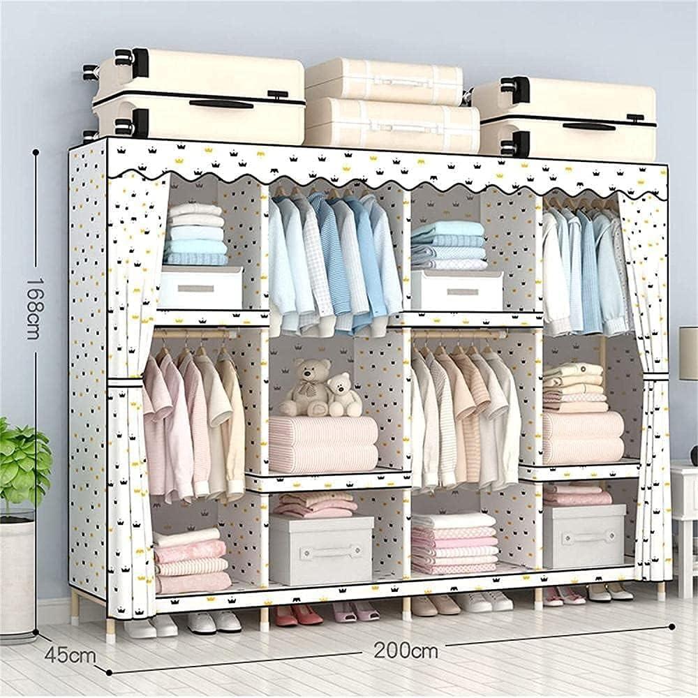 Our time using this fabric wardrobe has been notably positive, especially considering its lightweight and easily portable design. The wave point pattern adds a subtle but appealing aesthetic touch that elevates the overall look without overwhelming the space. Setup was straightforward, taking only minutes without any complex tools. We found the material durable enough to hold a significant amount of clothing, from hanging garments to accessories, making it a versatile storage solution. Its compact footprint allows it to fit comfortably in bedrooms,guest rooms,or even temporary living spaces,which is a big plus for those who need practical institution without permanent fixtures.