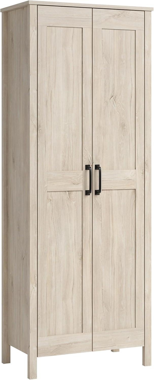 the Sauder 2-Door Storage Cabinet in Chalk Oak stands out as a practical and stylish solution for anyone looking to maximize their home’s storage space without sacrificing design. Its spacious interior with adjustable shelves adapts effortlessly to our varying needs, while the warm, rustic finish complements any room we choose to place it in. Whether it’s tucked away in the living room, hallway, or laundry area, this cabinet helps us transform clutter into calm, making our everyday spaces feel more organized and inviting. Durable, easy to assemble, and backed by a solid warranty, it truly checks all the boxes for smart, long-term storage.