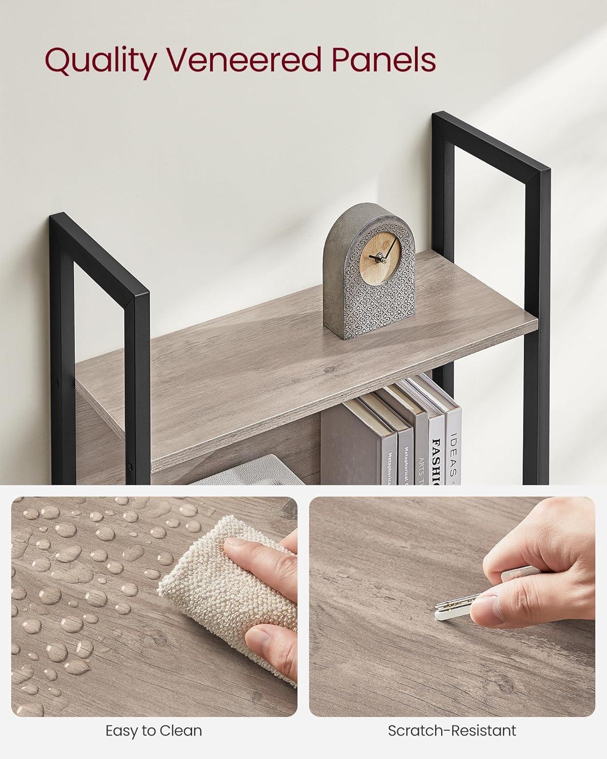 The combination of greige wood tones with a sleek black steel frame strikes a perfect balance between warmth and modernity, making this bookshelf a versatile piece that seamlessly integrates into various interior styles. In living rooms, the warm greige shelves soften the industrial black frame, creating an inviting backdrop for displaying books, plants, or decorative items. This dual-tone finish blends effortlessly with both neutral palettes and pops of colour, enhancing the overall ambiance without overpowering the room.We’ve found that it adds a elegant yet cozy touch to spaces that require both functionality and aesthetic appeal.