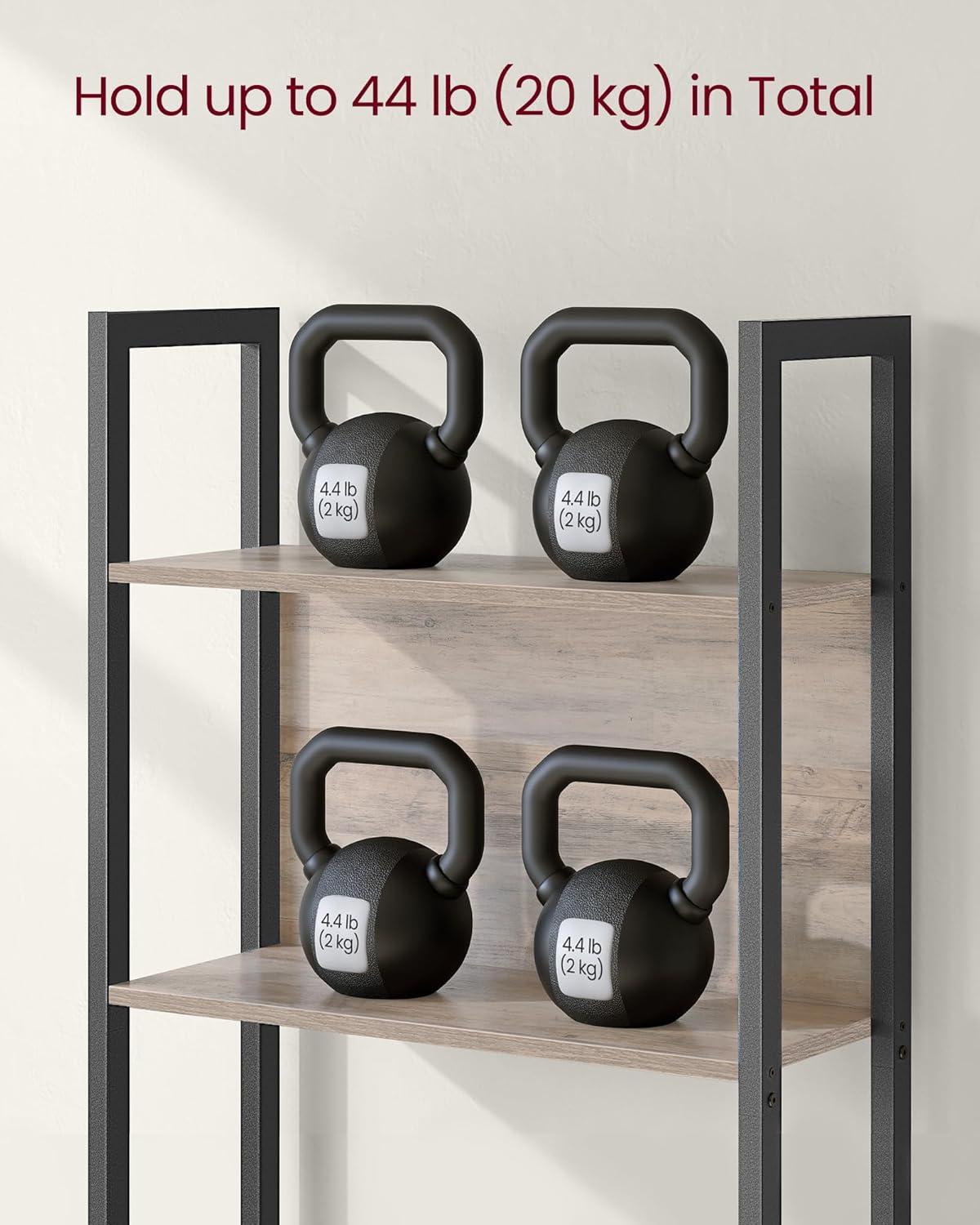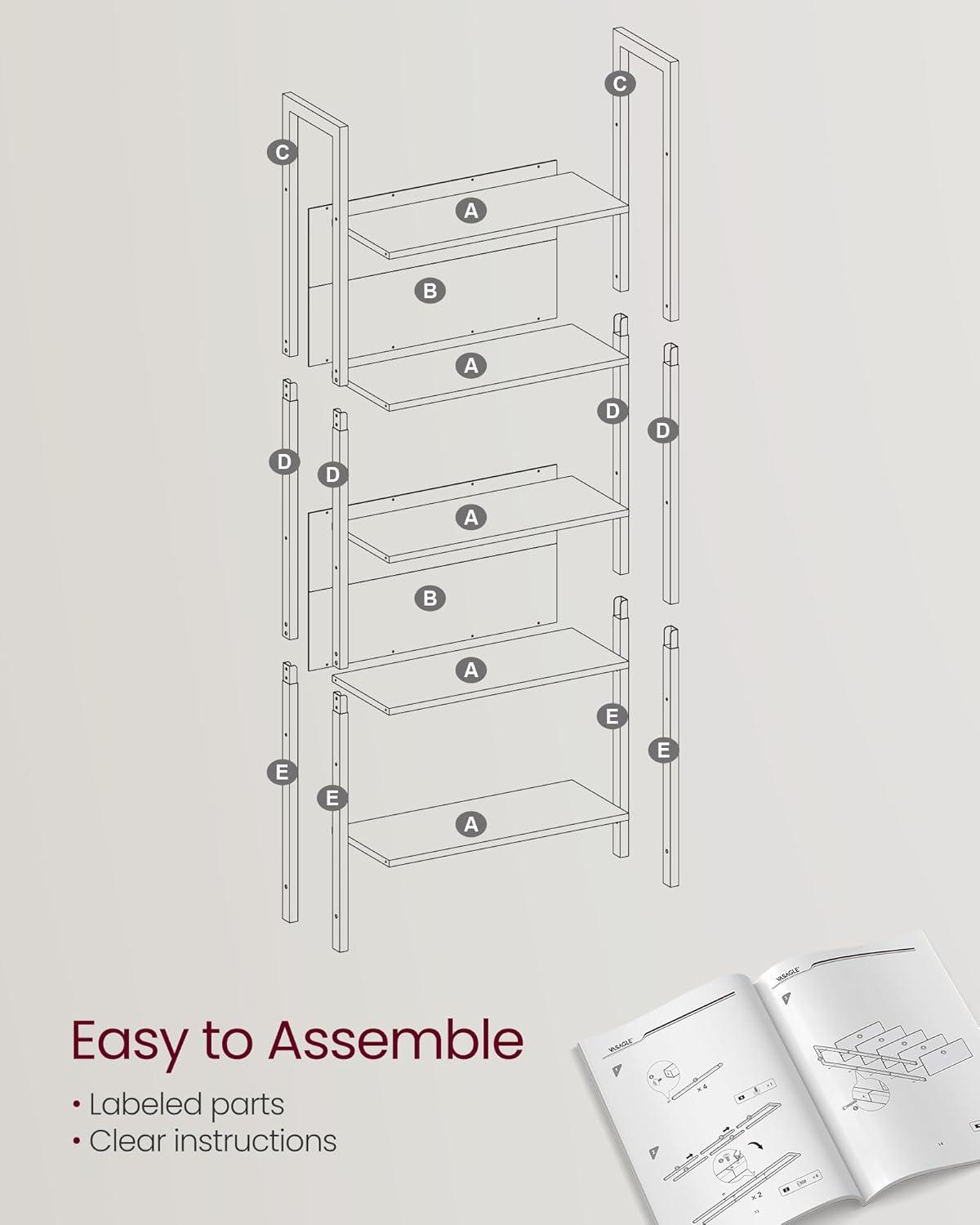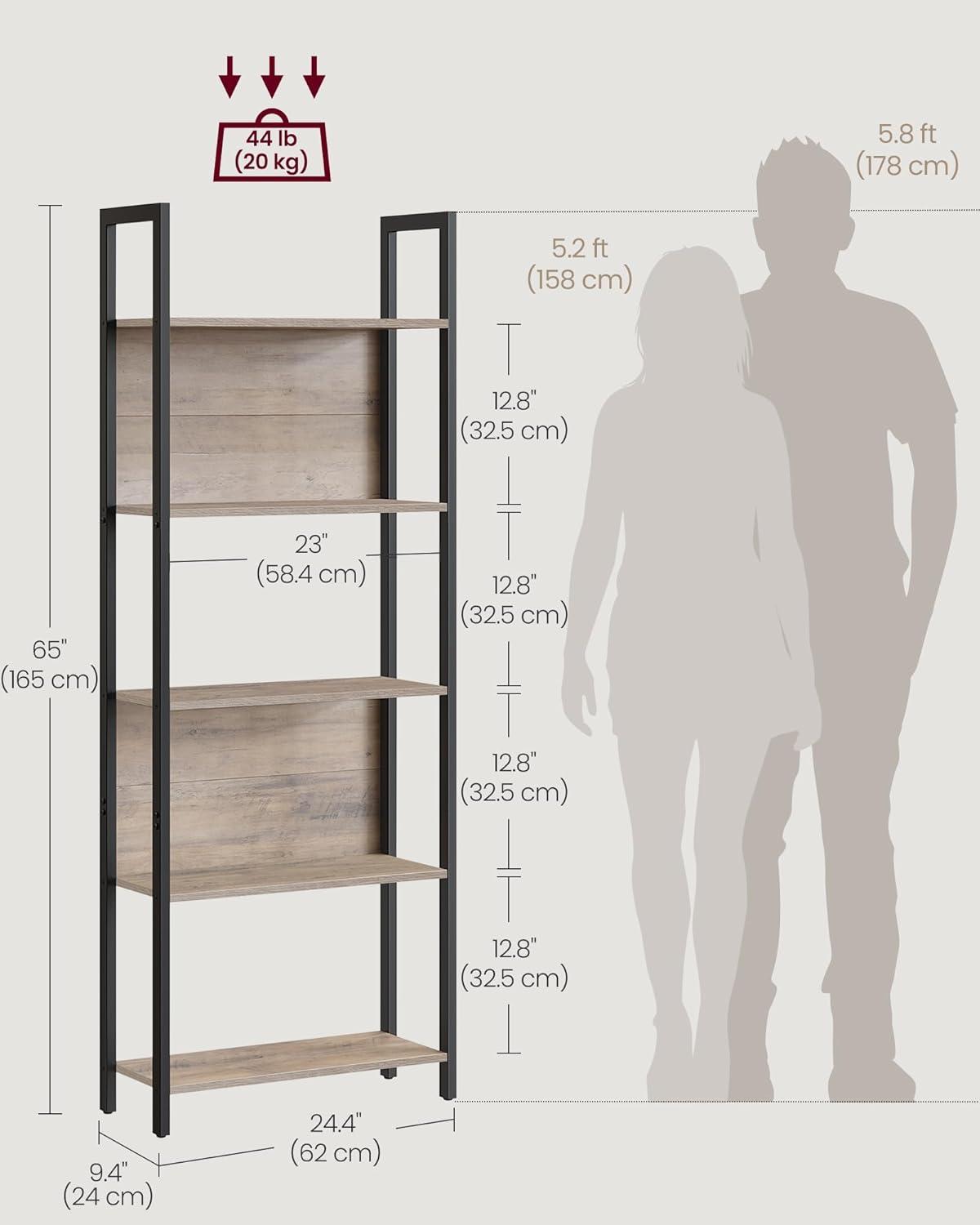 | Five spacious shelves provide ample room for books, plants, & decor. | Weight capacity maxes out at 44 lbs per shelf – careful with heavy items. |