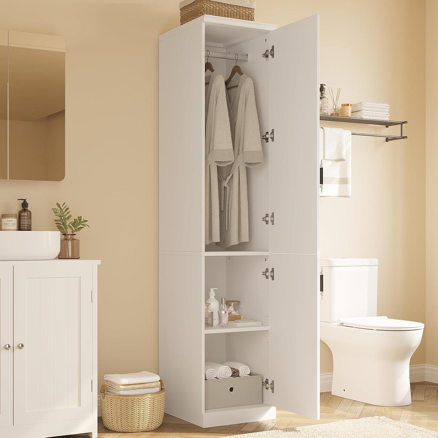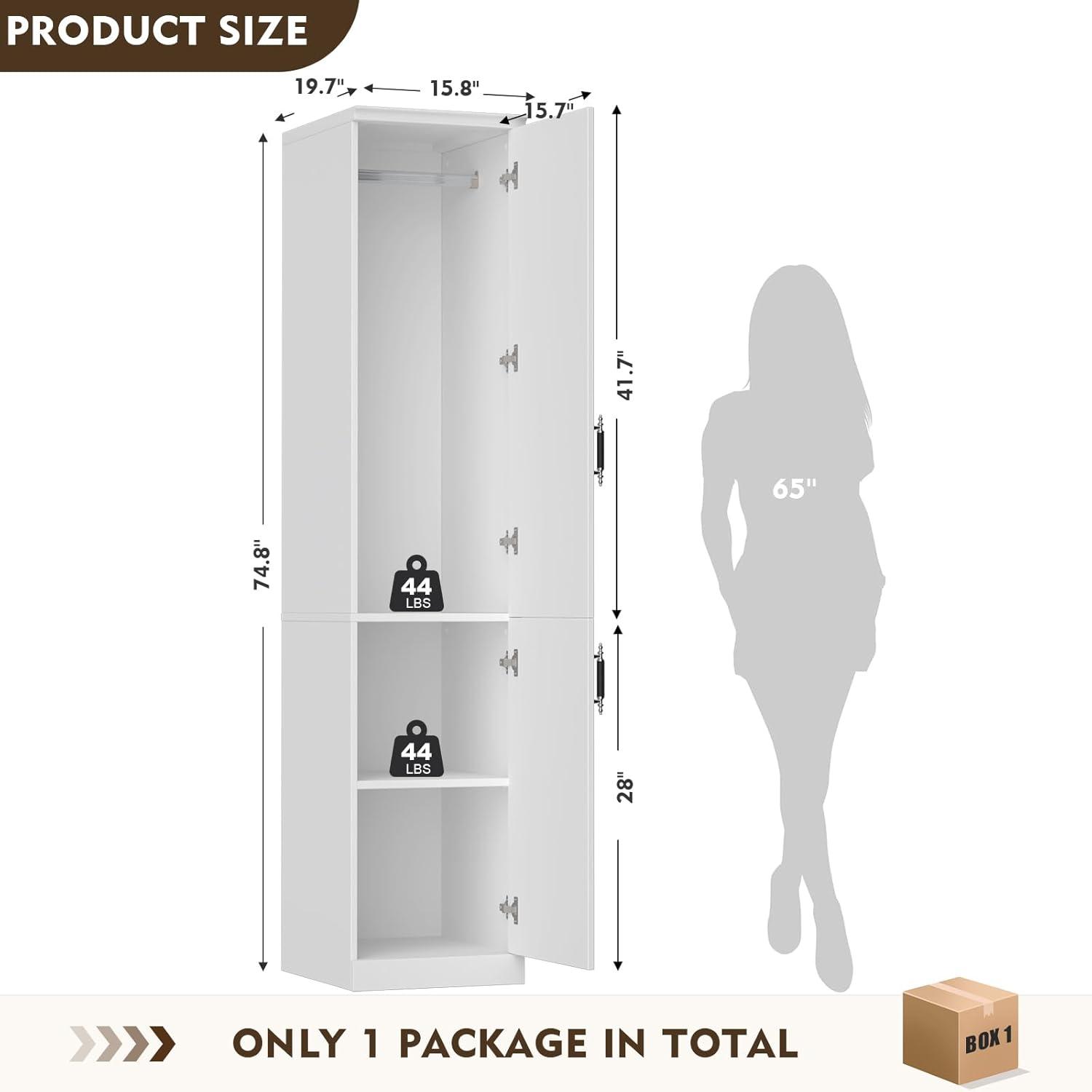 Light skims across the matte white face and you promptly sense the piece’s visual weight — substantial, but quietly restrained. This is the MEISSALIVVE Armoire Wardrobe Closet with 2 Door & Shelves, 74.8″ Large Wardrobe Cabinet with Hanging Rod — easier to think of simply as the armoire as you move closer. Your hand finds the cool, smooth MDF and the soft-closing doors settle with a polite hush; the wooden base and low-profile handles lend a grounded, utilitarian feel. From where you stand the height and proportions read as practical rather than decorative, and small details — the texture under your fingertips, the way the doors align — shape your first impression of how it lives in the room.